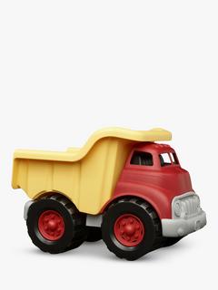 Made in the USA from recycled plastic milk containers, this award-winning, eco-designed toy truck has no metal axles and a workable dumper that encourages motor skill development.