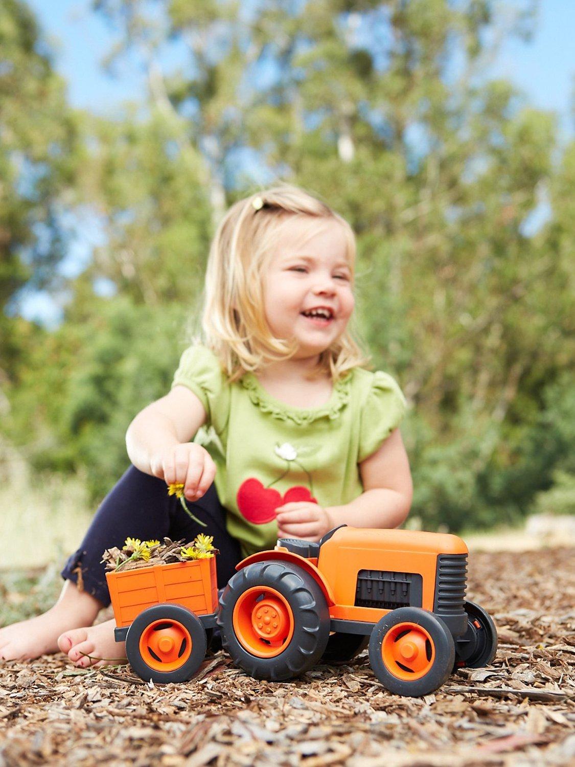 The Green Toys Tractor is colourful, lightweight and has chunky tyres so it can go anywhere at any time.