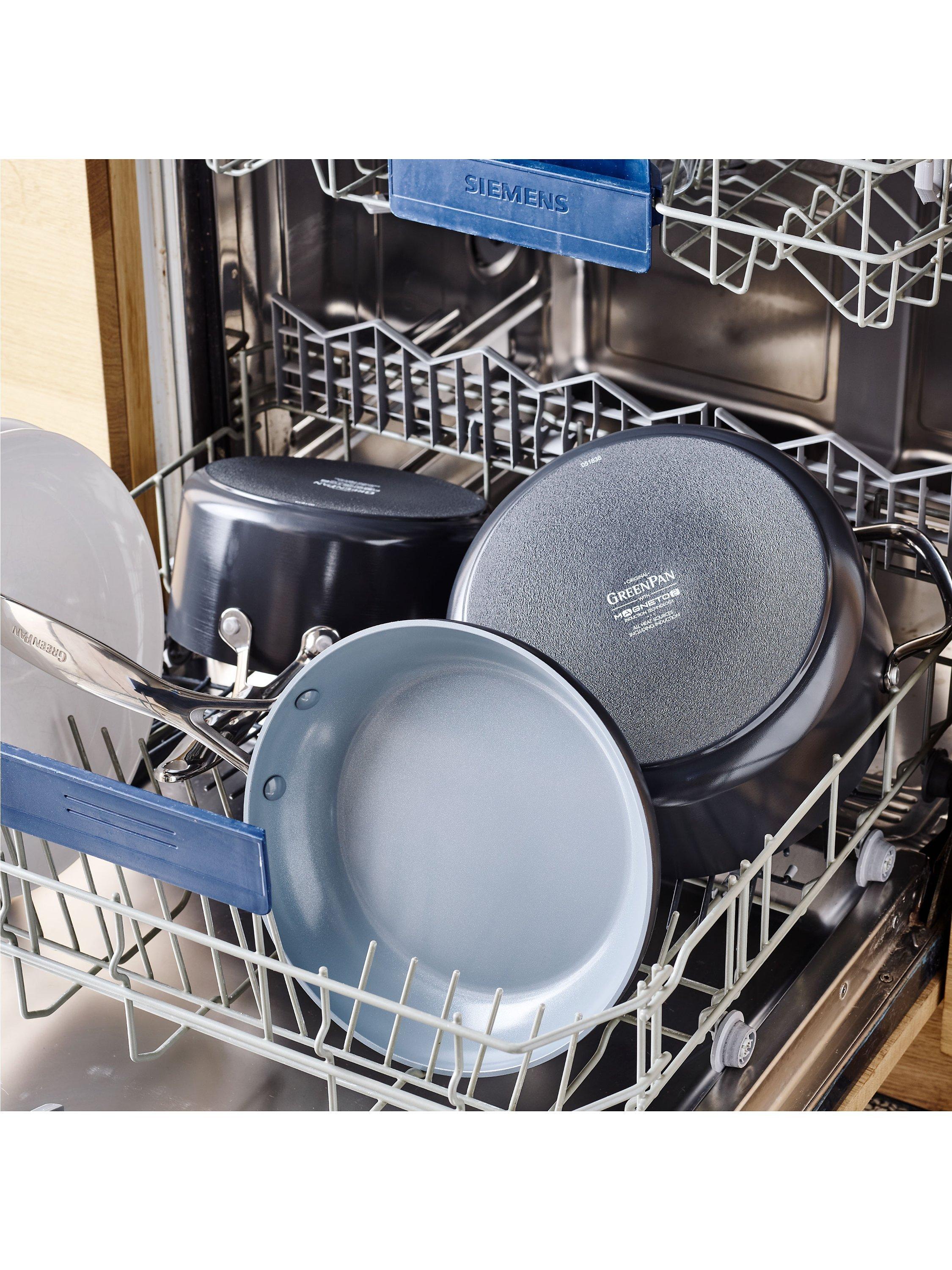Cleaning and storing - dishwasher safe. To preserve the pan, it’s recommended to wash it in warm soapy water. Please allow the cookware to cool completely before washing; leftover fats can carbonise fast. A hot pan plunged in cold water can result in a thermal shock and eventually deform the frying pan.