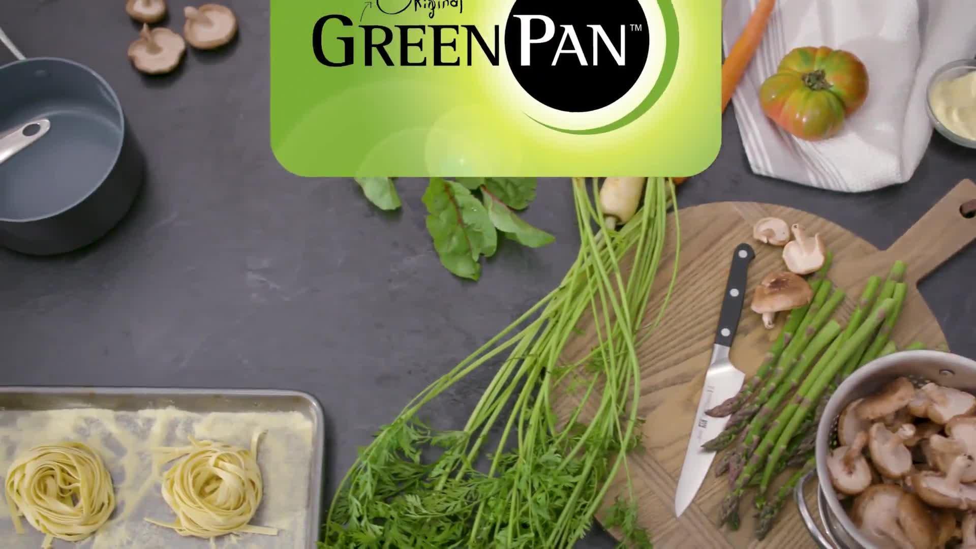 The GreenPan Venice Pro Extra range has a timeless look and a healthy ceramic non-stick coating for worry-free cooking. The Thermolon™ Infinity Professional ceramic non-stick coating provides excellent food release and is easy to clean. It is made with natural materials, such as sand and is PFAS-free so it doesn’t contain any harmful toxic chemicals. Thermolon™ heats up quickly and evenly, so medium to high heat will suffice for perfect results. Avoid using extra virgin oil or oil sprays, as they will carbonise quickly and affect the non-stick ability of the coating.