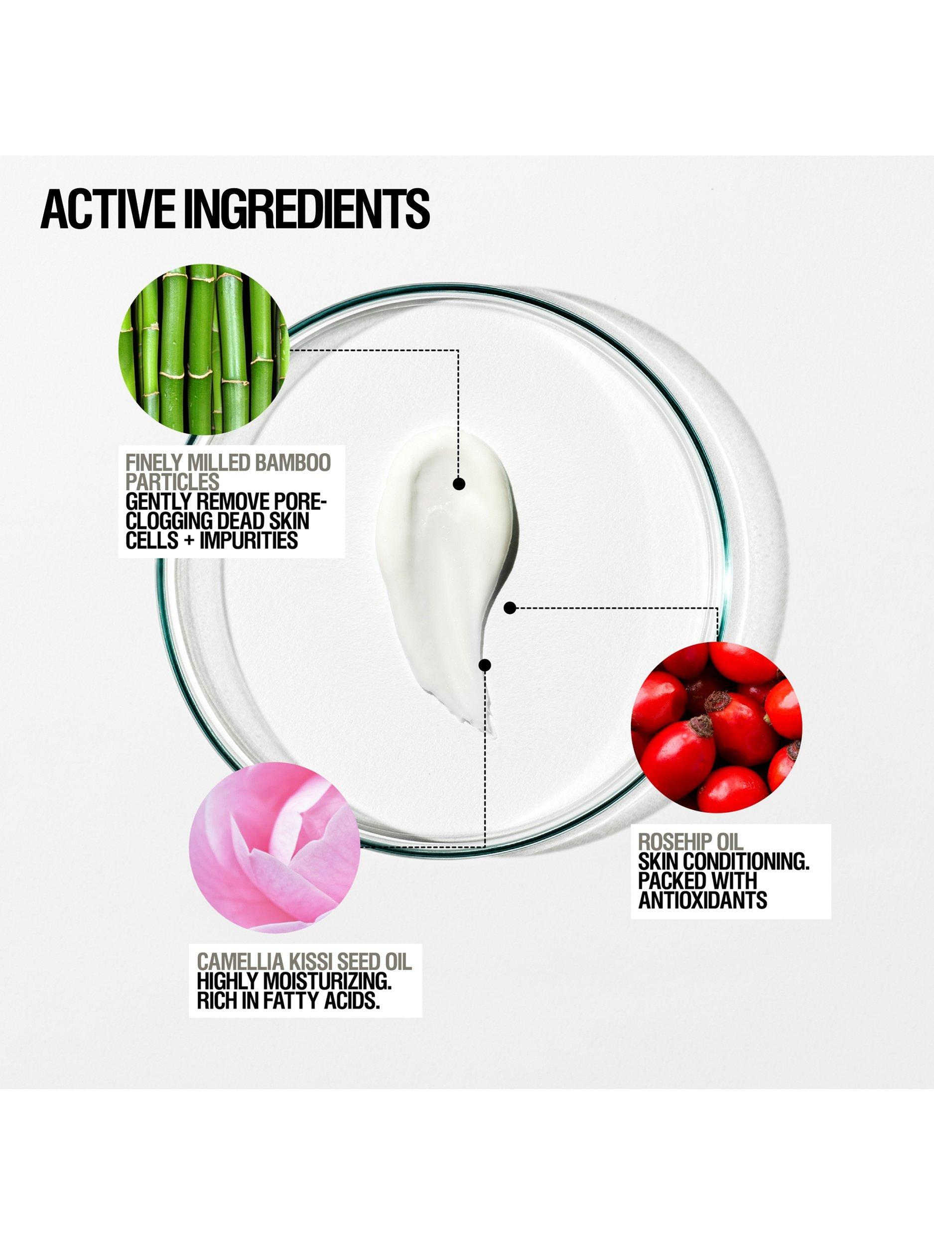 This polishing facial exfoliator is gentle enough for daily use and helps to remove dry, dead skin cells. Formulated with natural Bamboo exfoliant, Aloe, Pink Grapefruit and Glucomannan extract.