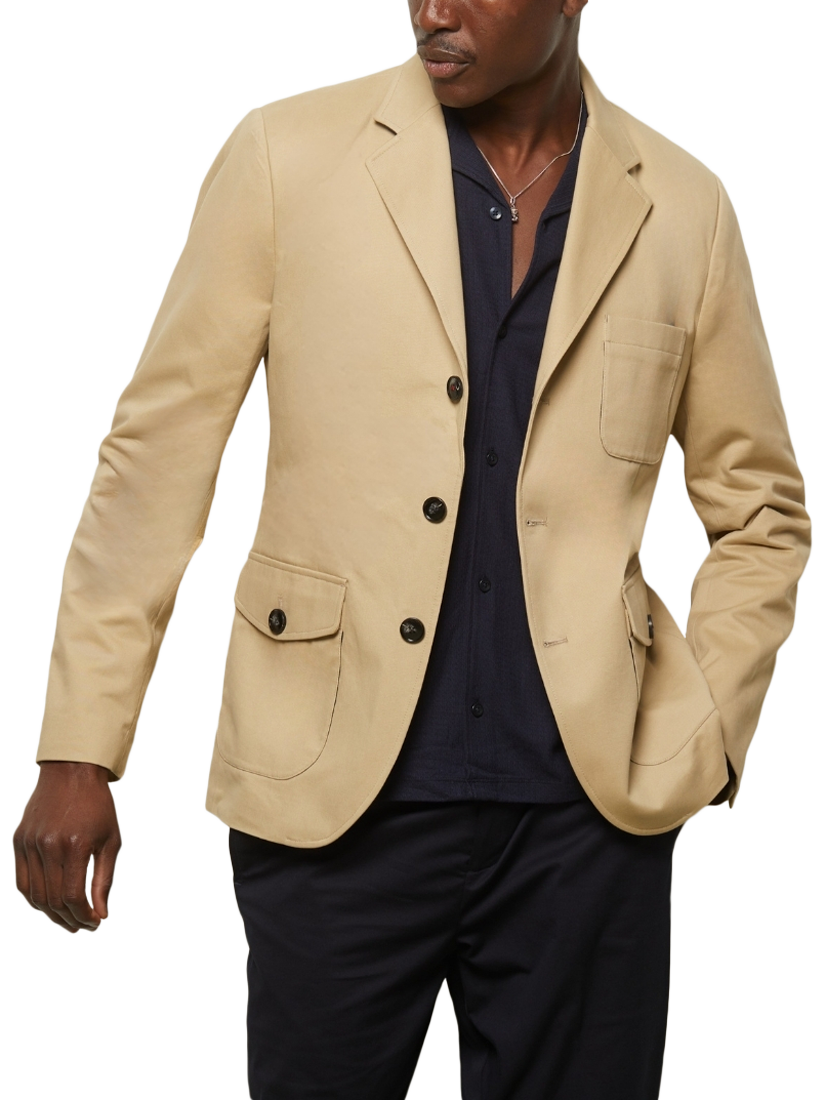 The Ballard blazer is crafted from cotton fabric for a tailored comfortable git. It features a single-breasted design with a 3-button fastening, patch pocket and natural shoulders.