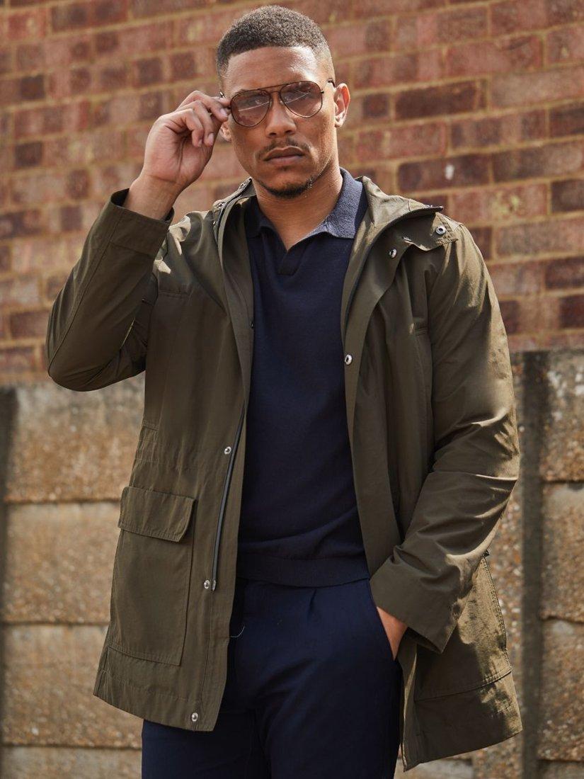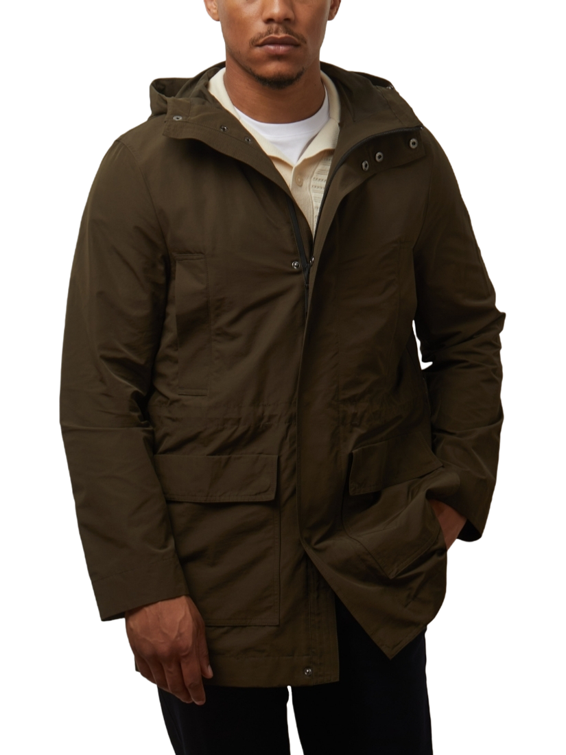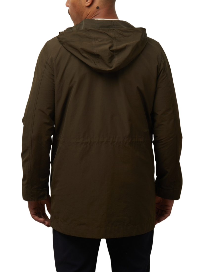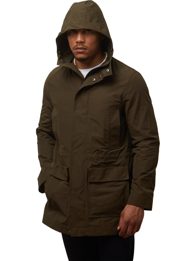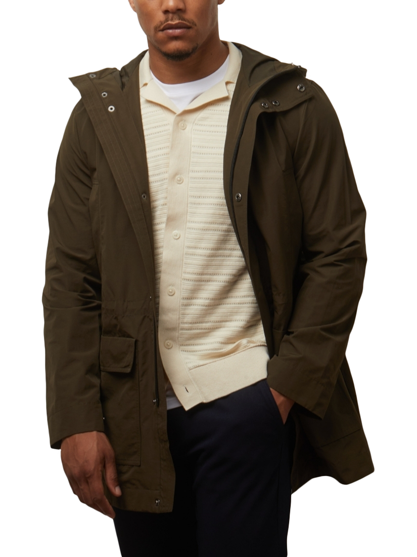 The Guards London Blake summer parka is a lightweight, modern outer layer designed for versatility. Made from a cotton nylon fabric, it features a hood, a two-way zip with stud fastening, chest pockets, and two patch pockets with side entry.