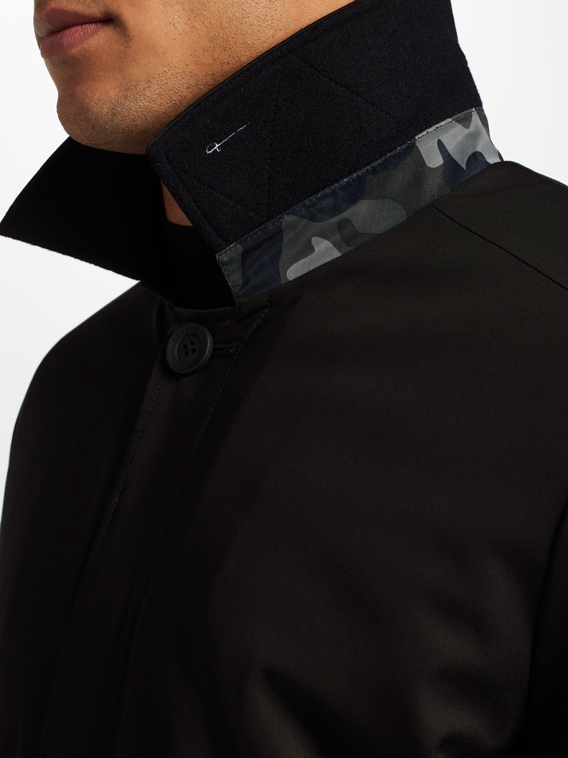 This three-quarter length coat is made in a shower resistant Tencel stretch fabric for high performance to guard against all weather. With quilted THINSULATE lining this raincoat offers additional warmth to guard against the chill. The coat is uniquely styled with a concealed placket, checked flannel lining and their distinctive urban camouflage trim under collar.