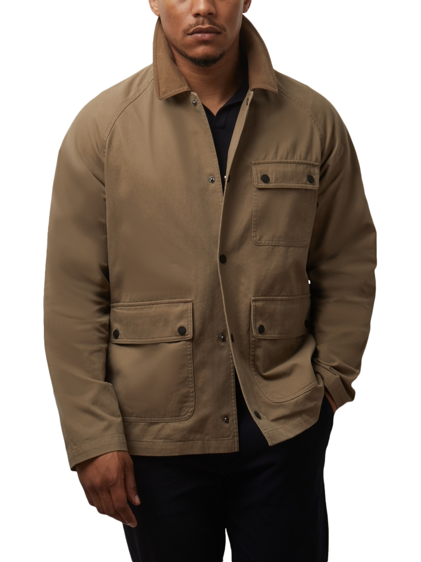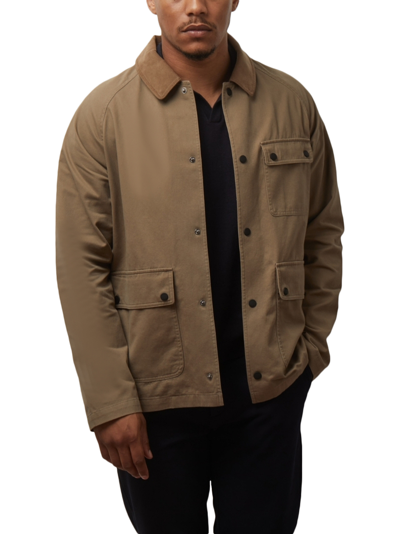 The Guards London Ernest Harrington is a contemporary take on a classic summer staple. Cut in a an oversized shorter length for a modern silhouette, it features three patch pockets and a corduroy collar that adds texture and contrast. The front is secured with a clean stud fastening. Garment washed and crafted from breathable cotton, this lightweight jacket is ideal for the warmer season.