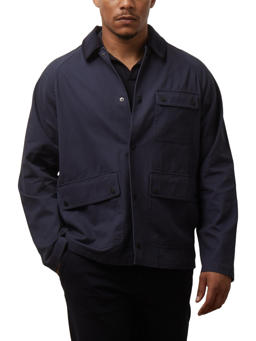 The Guards London cotton Ernest Harrington jacket is a contemporary take on a classic summer staple. Cut in an oversized shorter length for a modern silhouette, it features three functional patch pockets and a corduroy collar that adds texture and contrast. The front is secured with a clean stud fastening, offering ease and practicality. Garment washed and crafted from breathable cotton, this lightweight jacket is perfect for warm weather.