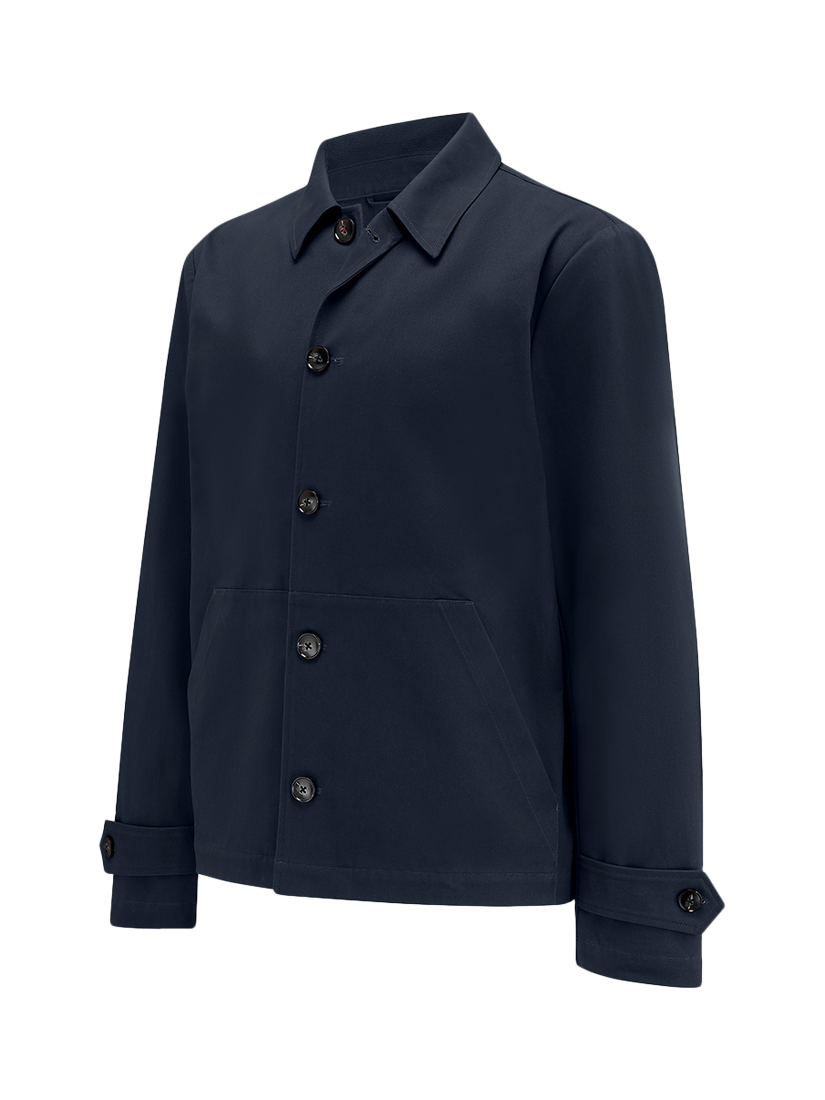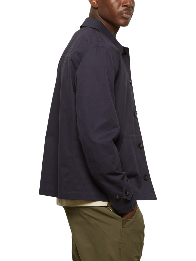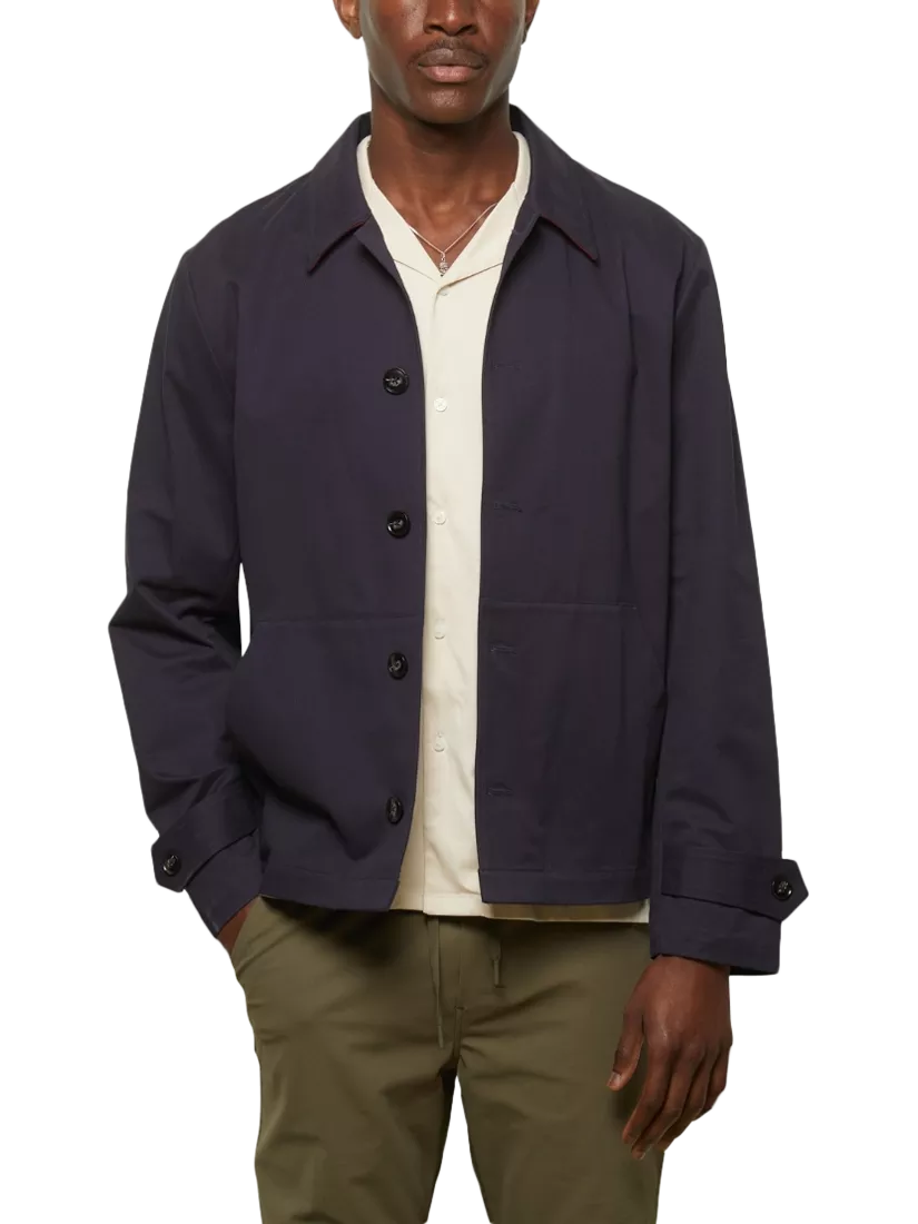 The Guards Chore jacket draws inspiration from traditional workwear. It features a relaxed, chore-style cut made from a cotton twill fabric, making it ideal for layering.