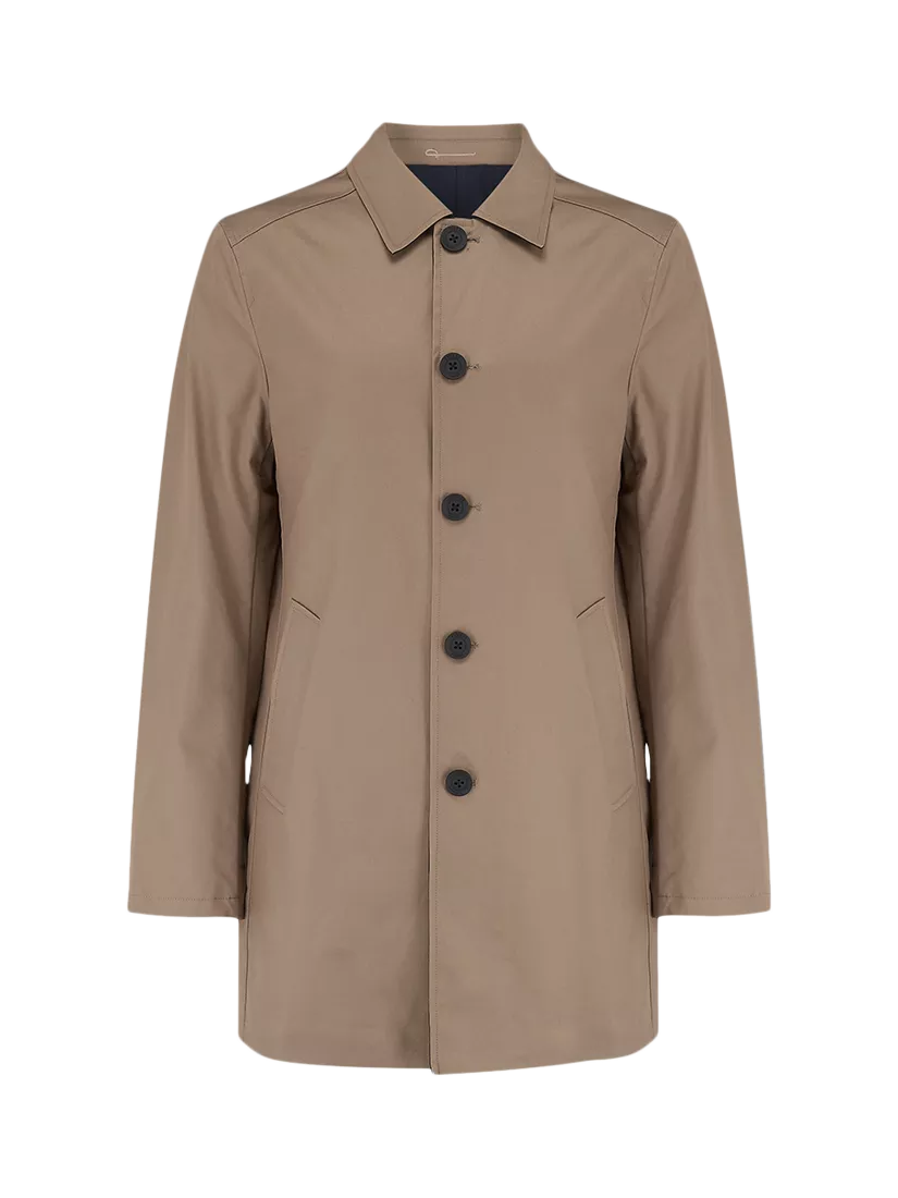 Putting practicality at the forefront, opt for this reversible raincoat designed by Guards London. Designed in a flared shape and made with a breathable, cotton-rich fabric, it is water resistant, longer in length and fastens easily with buttons through the front. Just choose between either side to match your look best.