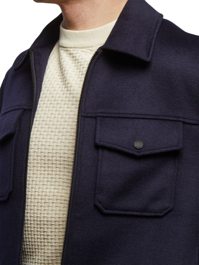 Discover a piece that perfectly blends the old with the new. The Guards London Stelle Trucker Jacket takes a true wardrobe classic and redefines it with luxurious textures, making it a destination for modern style. Crafted from a wool-blend fabric with a uniquely soft, brushed finish, this jacket elevates the everyday with a quality that speaks for itself. It’s a confident, functional design, featuring a neat zip-front closure and twin chest pockets on either side. This is thoughtful, simple design with a bold, tactile edge, proving that utility and luxury can effortlessly coexist.