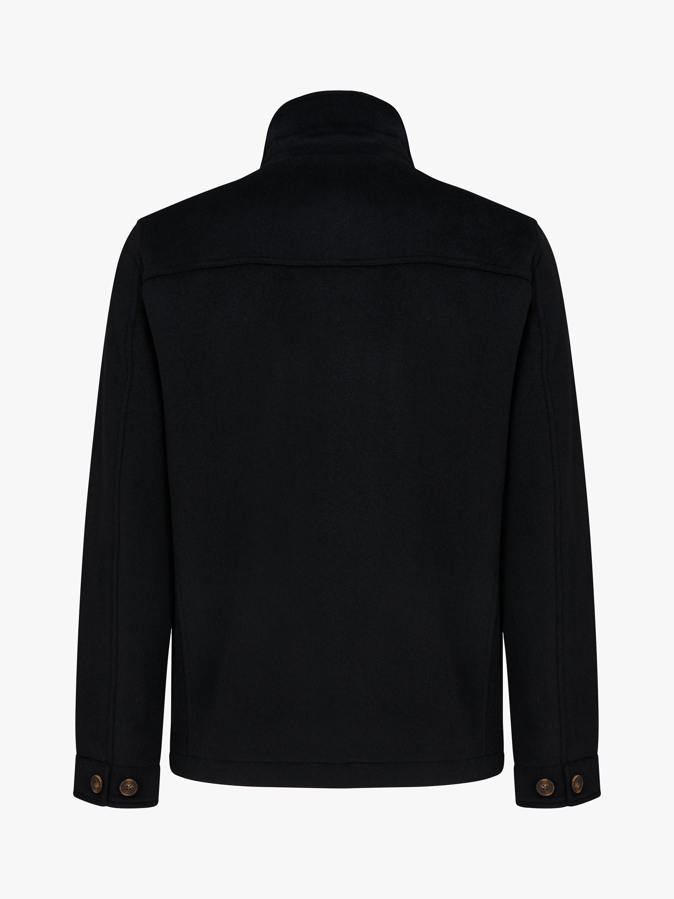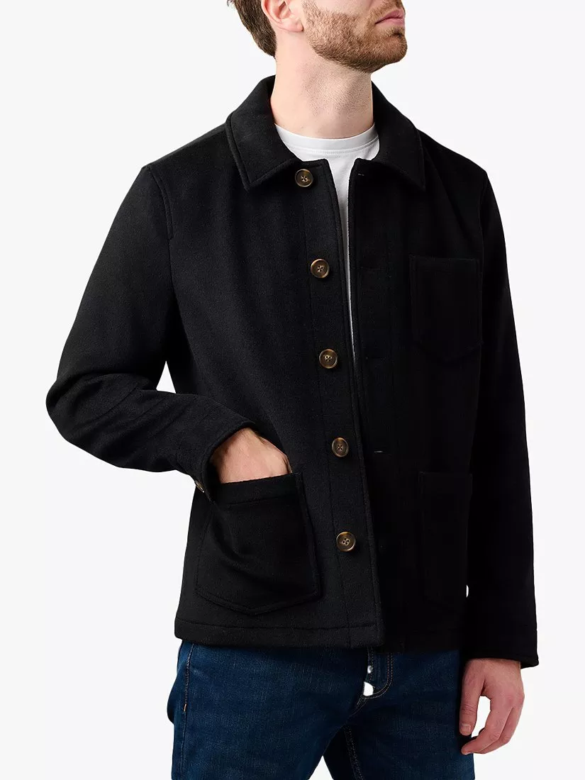 Made with a rich wool blend, it is cut to a conventional length and buttons closed for easy on-off.