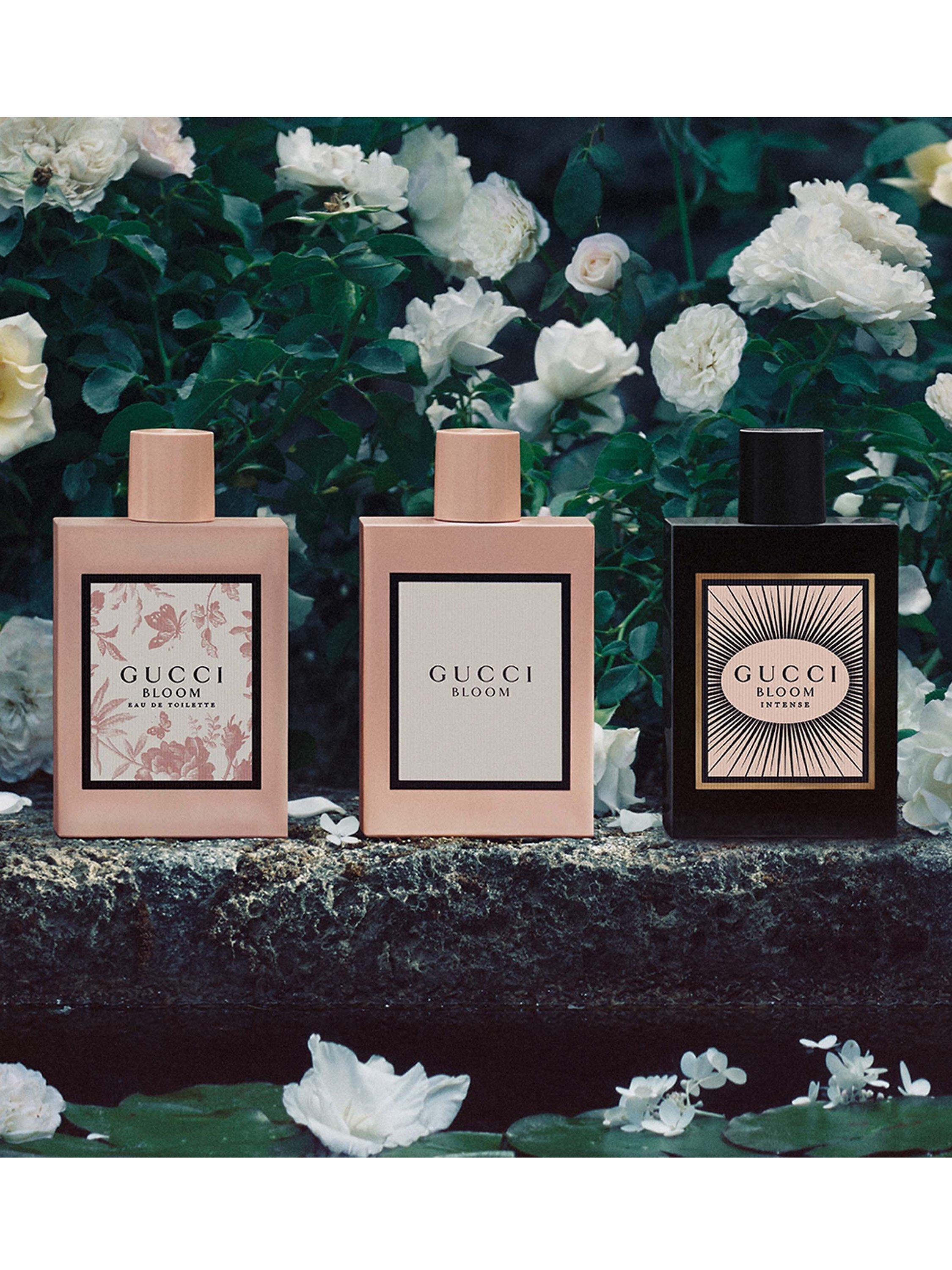 A nocturnal spell for awakening the magic of your inner self. Gucci Bloom Eau de Parfum Intense bottles the feminine force of creativity, revealing the most entrancing distillation in the Gucci Bloom garden yet. Its inspired fragrance intensifies the Gucci Bloom white floral blend with added sensuality, a go-to perfume for any occasion.