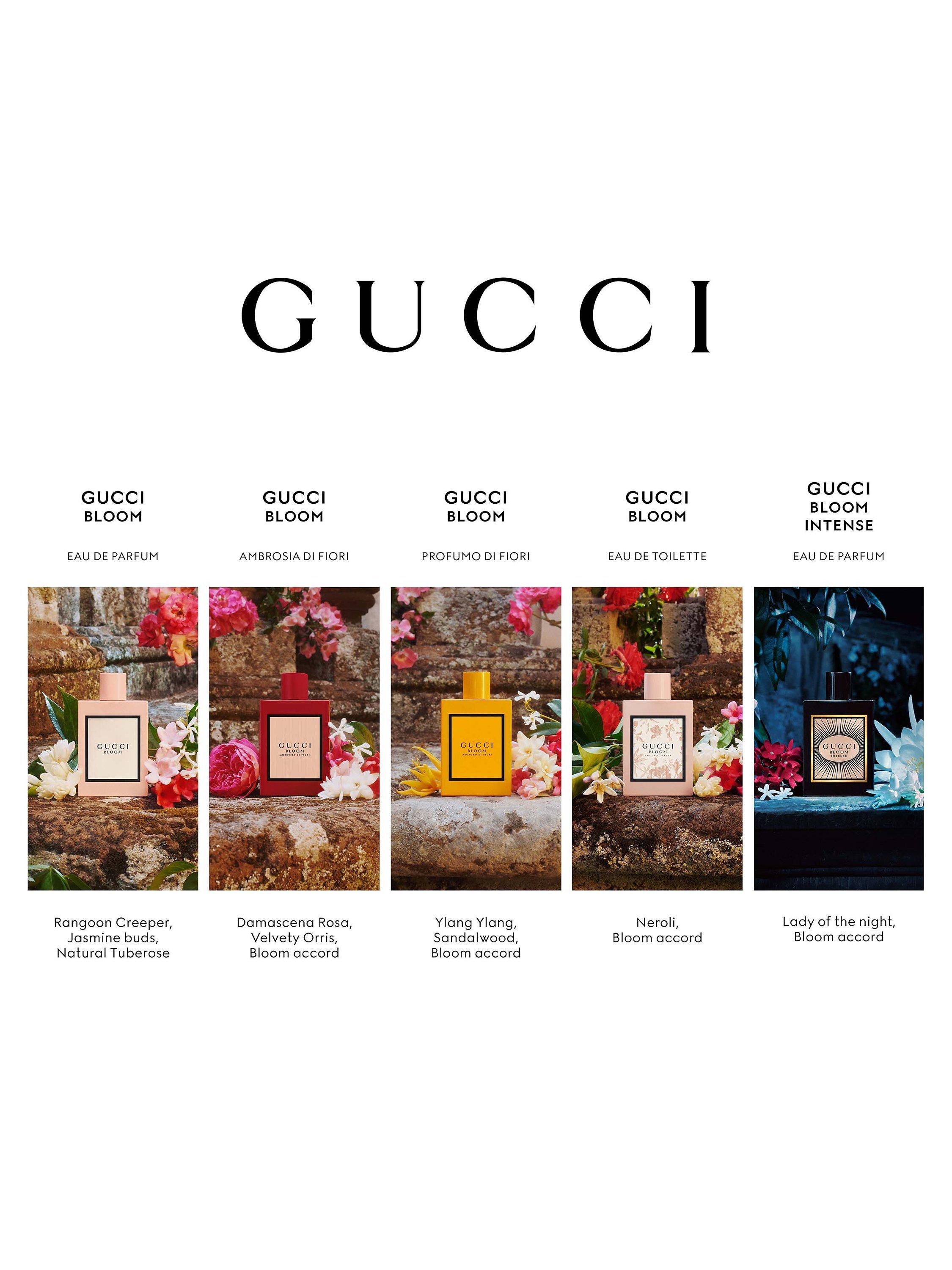 Gucci Bloom Eau de Parfum Intense, blended by Master Perfumer Alberto Morillas, is an addictive deep floral fragrance that smells divine, weaving the signature of Jasmine Bud extract and Tuberose into an embodied essence. The Eau de Parfum Intense naturally expands into its full vital and mesmerizing expression, blooming like the individual who wears it.