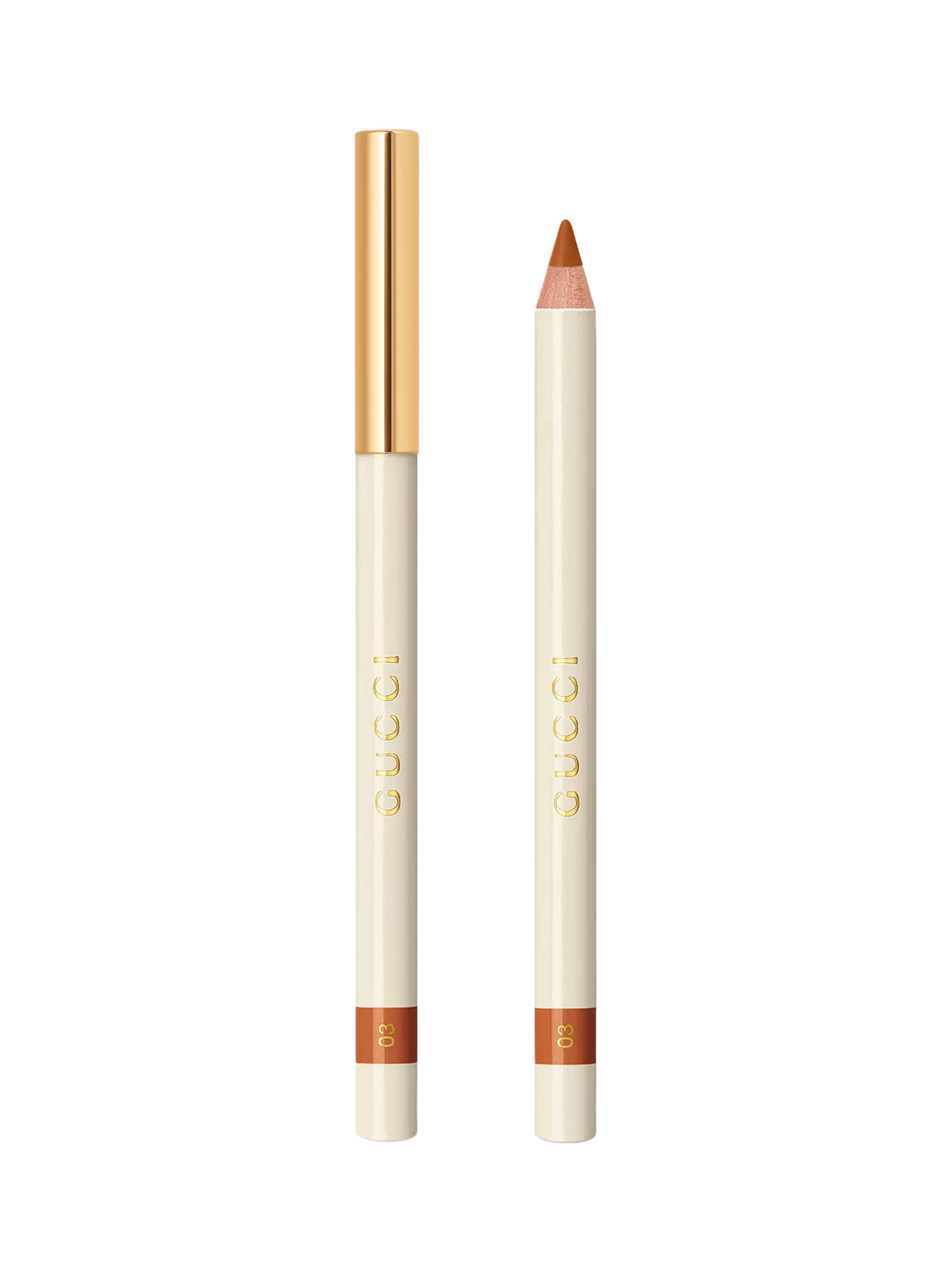 Available in six flattering shades ranging from beige to taupe and red, Crayon Contour Des Lèvres Lip Pencil is presented in a sleek white tube with a gold-plated cap, the colour of the lip liner, and finished with Gucci lettering in gold.