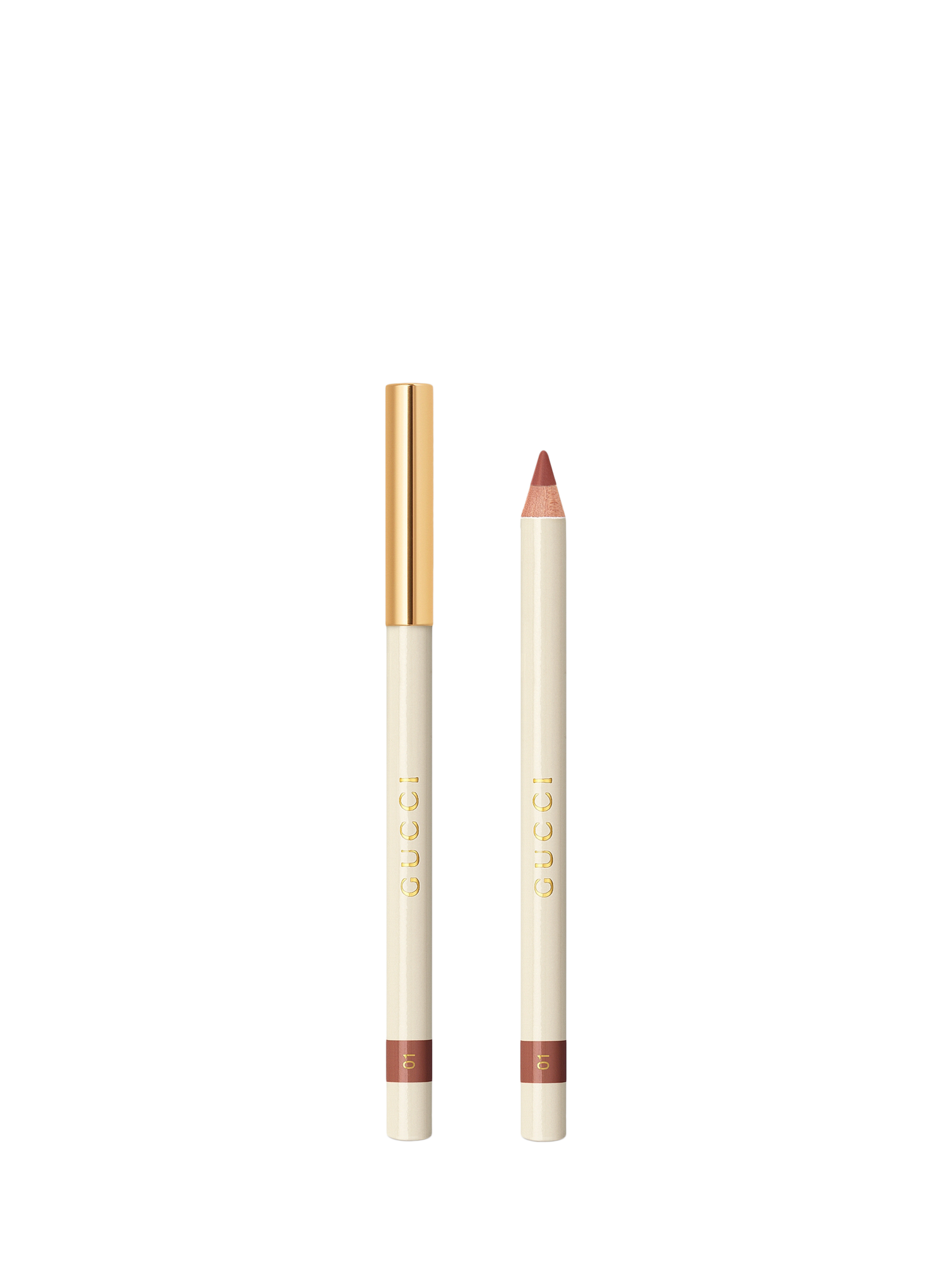 Available in six flattering shades ranging from beige to taupe and red, Crayon Contour Des Lèvres Lip Pencil is presented in a sleek white tube with a gold-plated cap, the colour of the lip liner, and finished with Gucci lettering in gold.