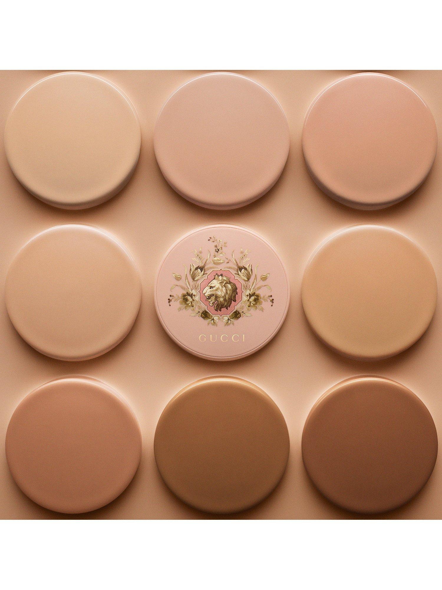 What else you need to know: This Gucci luminous foundation blends seamlessly into the skin, delivering flawless, adjustable light to medium coverage for a very natural finish. Available in twelve foundation shades that provide intense hydration that lasts all day, Cushion De Beauté skin-caring foundation by Gucci Beauty is housed within a refillable pastel pink compact, complete with a mirror and a soft cushion applicator and embellished with a lion motif encircled by a wreath of flowers. The external packaging echoes this delightful design, adding an extra touch of allure and playfulness.