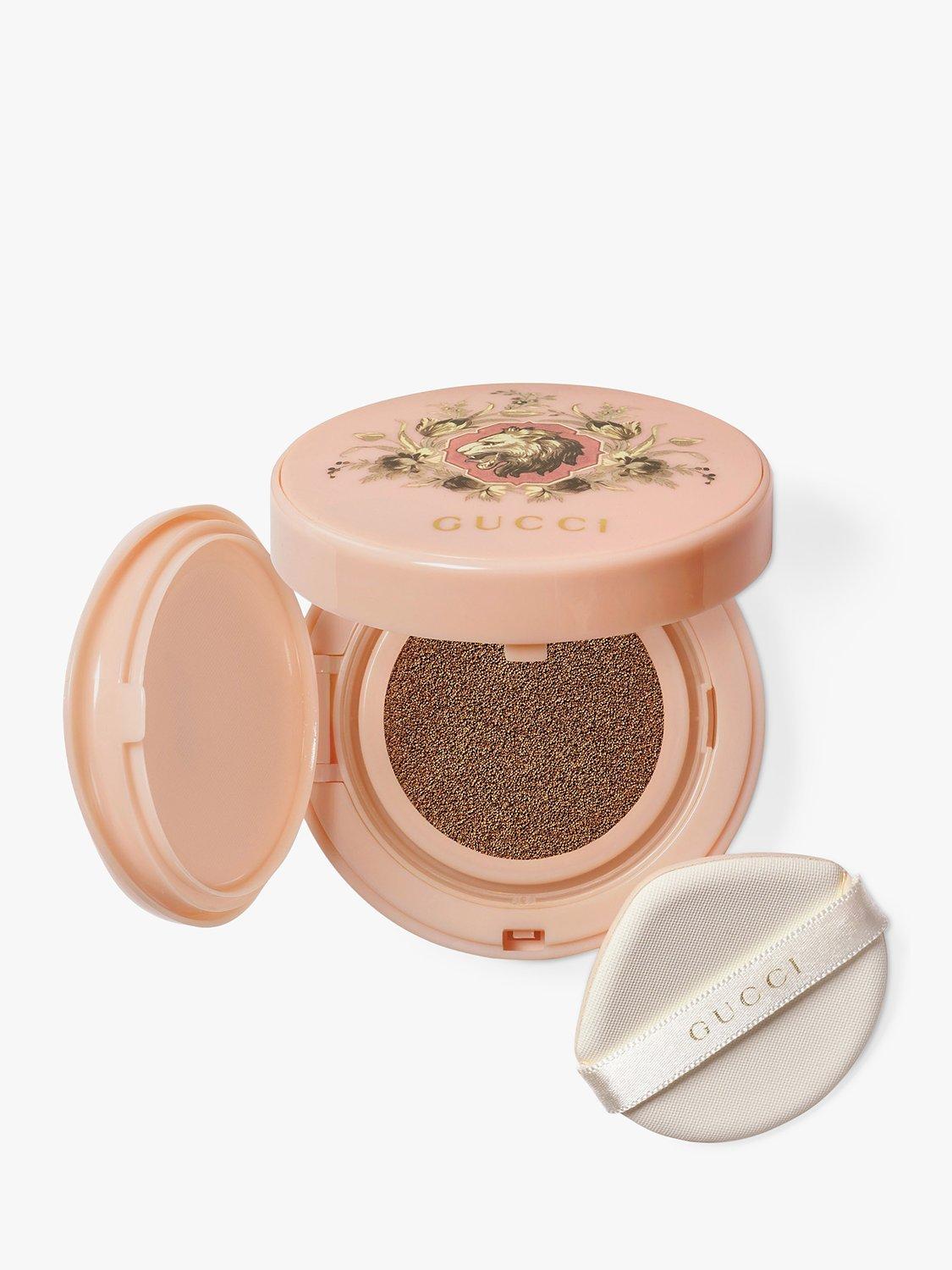 What else you need to know: This Gucci luminous foundation blends seamlessly into the skin, delivering flawless, adjustable light to medium coverage for a very natural finish. Available in twelve foundation shades that provide intense hydration that lasts all day, Cushion De Beauté skin-caring foundation by Gucci Beauty is housed within a refillable pastel pink compact, complete with a mirror and a soft cushion applicator and embellished with a lion motif encircled by a wreath of flowers. The external packaging echoes this delightful design, adding an extra touch of allure and playfulness.