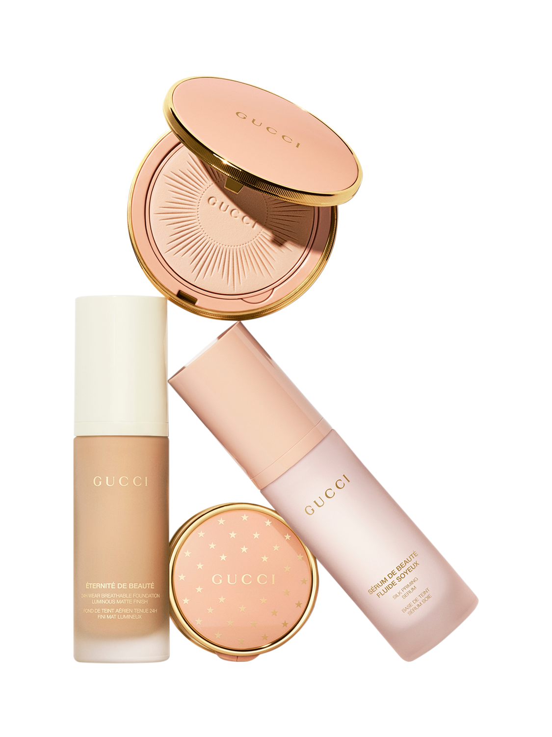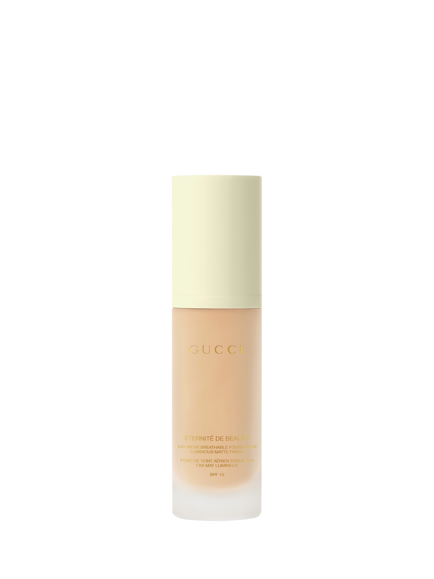 Gucci Éternité De Beauté foundation stays on the whole day, no matter how you play. This 24H, long-lasting Gucci foundation delivers a luminous-matte finish and full coverage in one drop, while feeling breathable, weightless, and comfortable. Available in 40 shades.