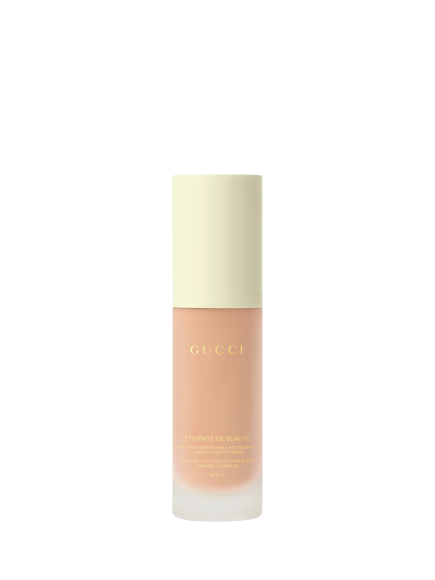 Gucci Éternité De Beauté foundation stays on the whole day, no matter how you play. This 24H, long-lasting Gucci foundation delivers a luminous-matte finish and full coverage in one drop, while feeling breathable, weightless, and comfortable. Available in 40 shades.