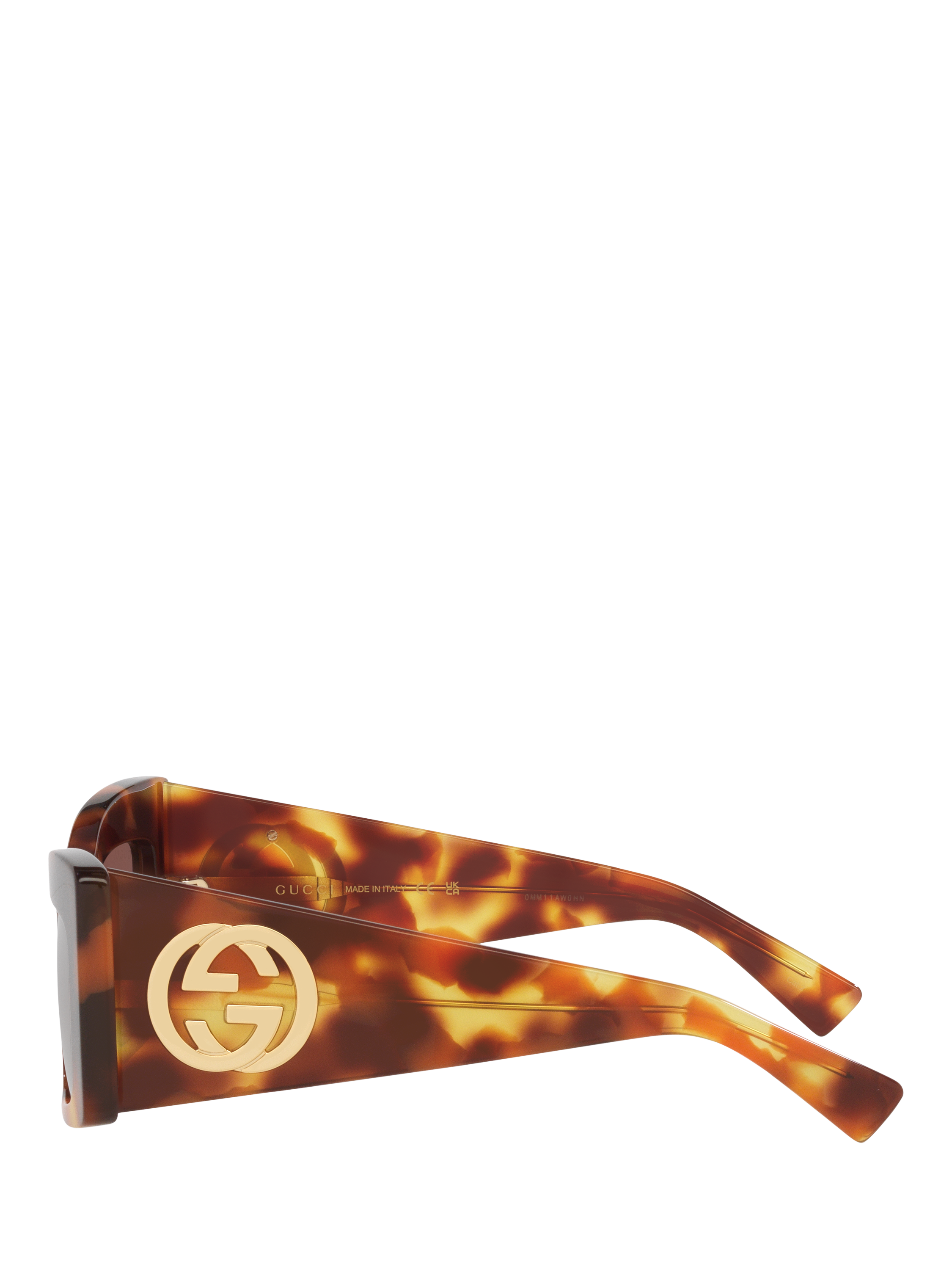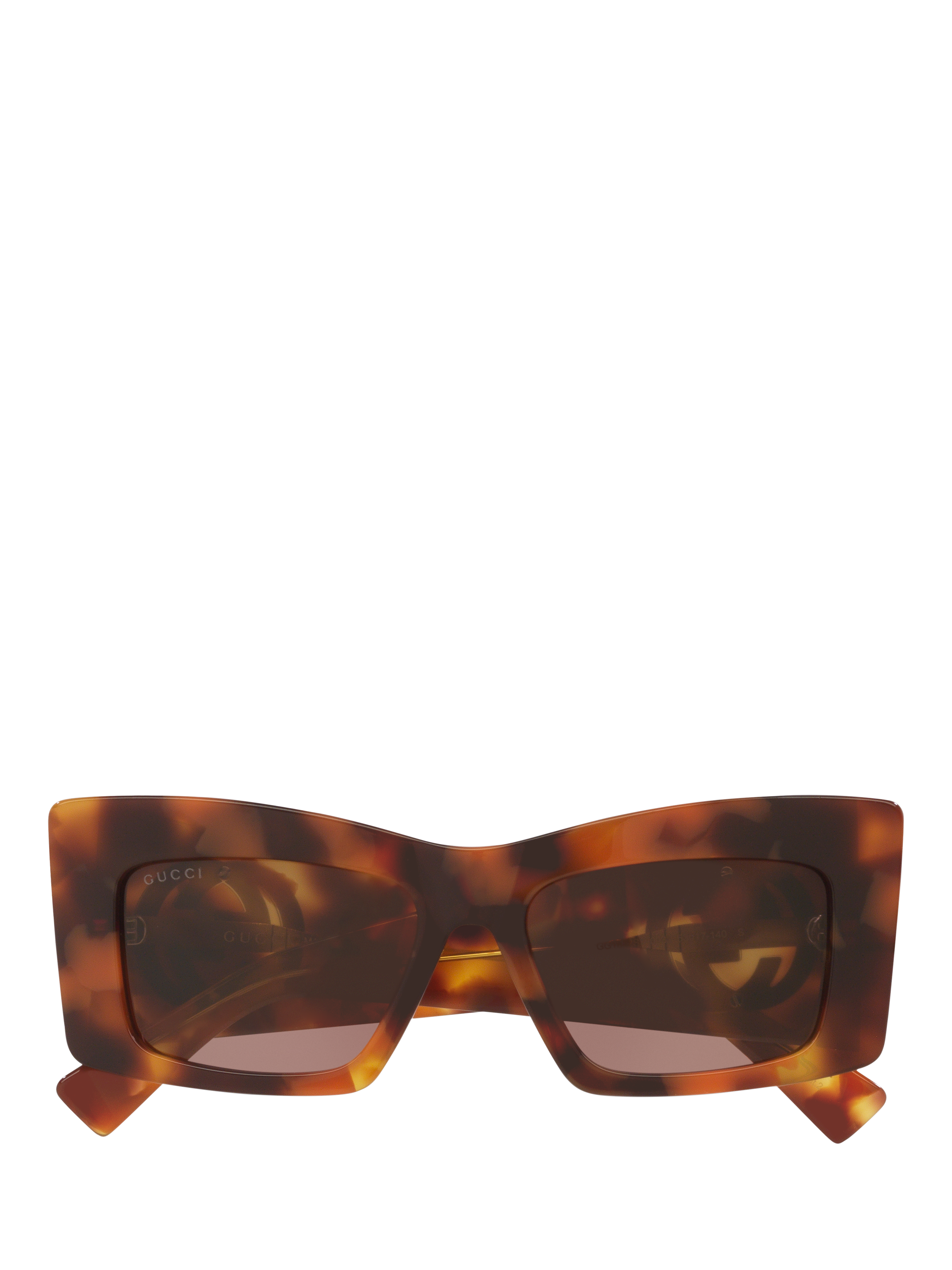 In a chunky rectangular design, these women's sunglasses by Gucci will elevate every moment. With tactile acetate frames that are both comfortable and impact resistant for everyday peace of mind, they invite you to see the world from a fresh, unexpected perspective.