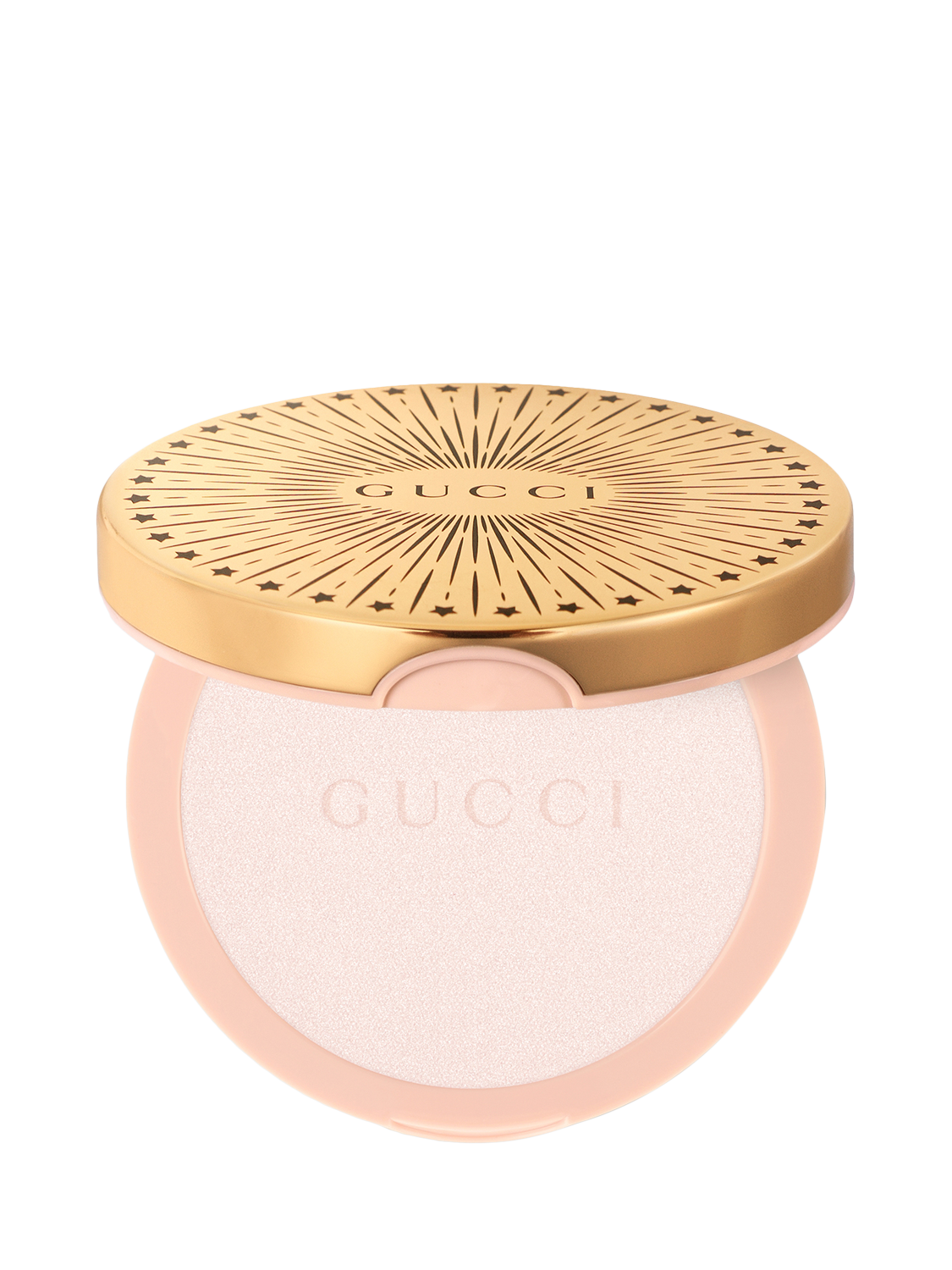Housed in a luxurious round golden compact adorned with the House’s iconic star and line pattern, and equipped with an inside mirror for on-the-go applications, the Gucci Glow Highlighter is a masterpiece of design and functionality. Available in 5 multi-dimensional shades, it invites you to experiment and express your unique style and personality with each application. Discover the power of Gucci Glow Highlighter and let your skin glow like never before."How to use: