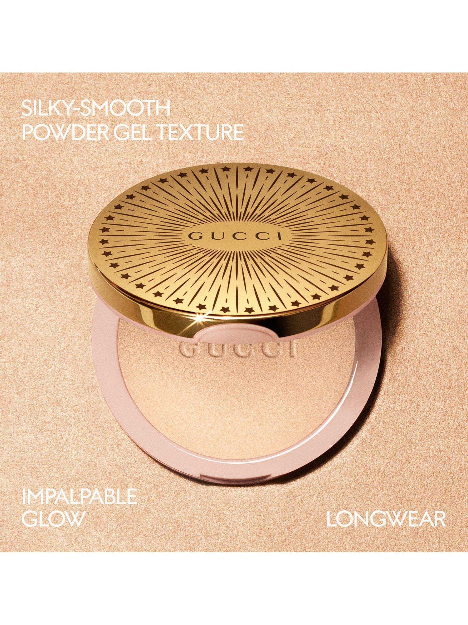 - Eyes: As an eyeshadow: Gucci Glow powder highlighter can also be used as an eyeshadow on its own. Using a brush or a finger, apply the product all over the eyelids. Build and blend to intensify the colour as desired