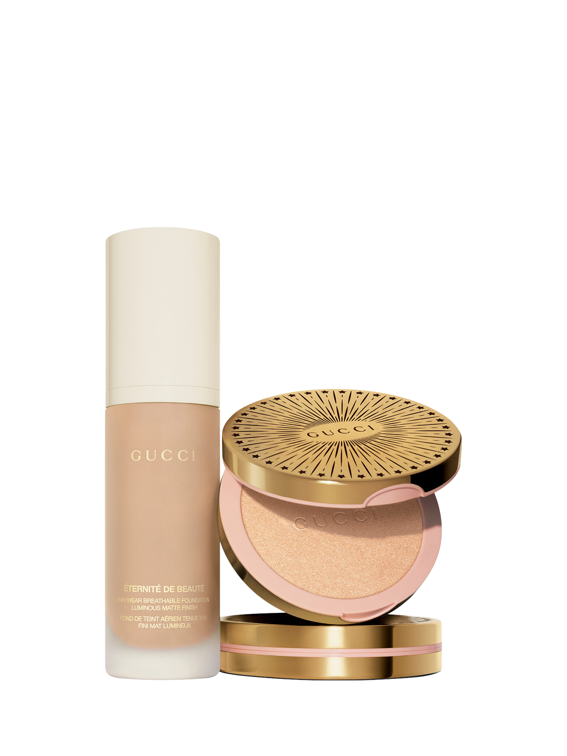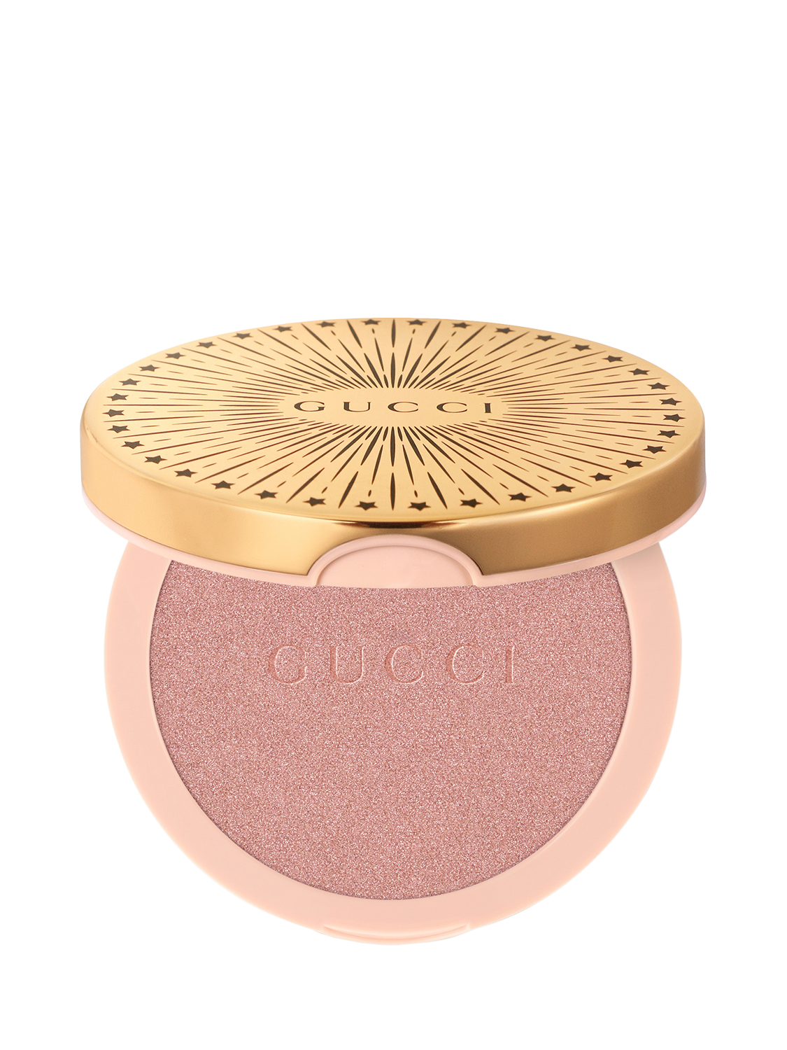 Housed in a luxurious round golden compact adorned with the House’s iconic star and line pattern, and equipped with an inside mirror for on-the-go applications, the Gucci Glow Highlighter is a masterpiece of design and functionality. Available in 5 multi-dimensional shades, it invites you to experiment and express your unique style and personality with each application. Discover the power of Gucci Glow Highlighter and let your skin glow like never before."How to use: