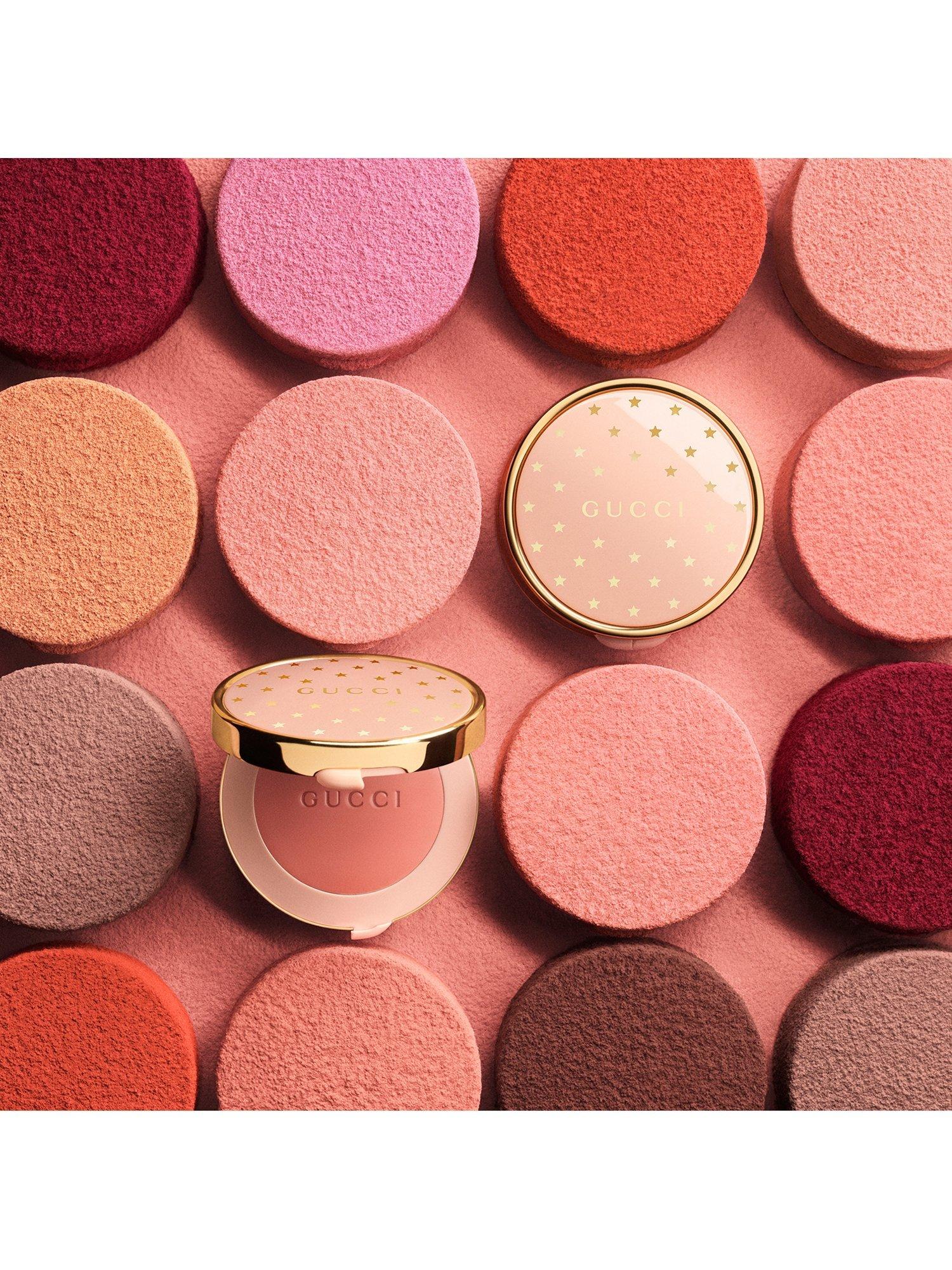 Gucci Beauty presents Gucci Blush De Beauté, the House’s first powder blush. Smooth, playful and multi-use, it can be applied on cheeks and eyes, becoming one with skin. Thanks to its formula, you can layer makeup effortlessly from a light flush to a daring look and any mood in between.