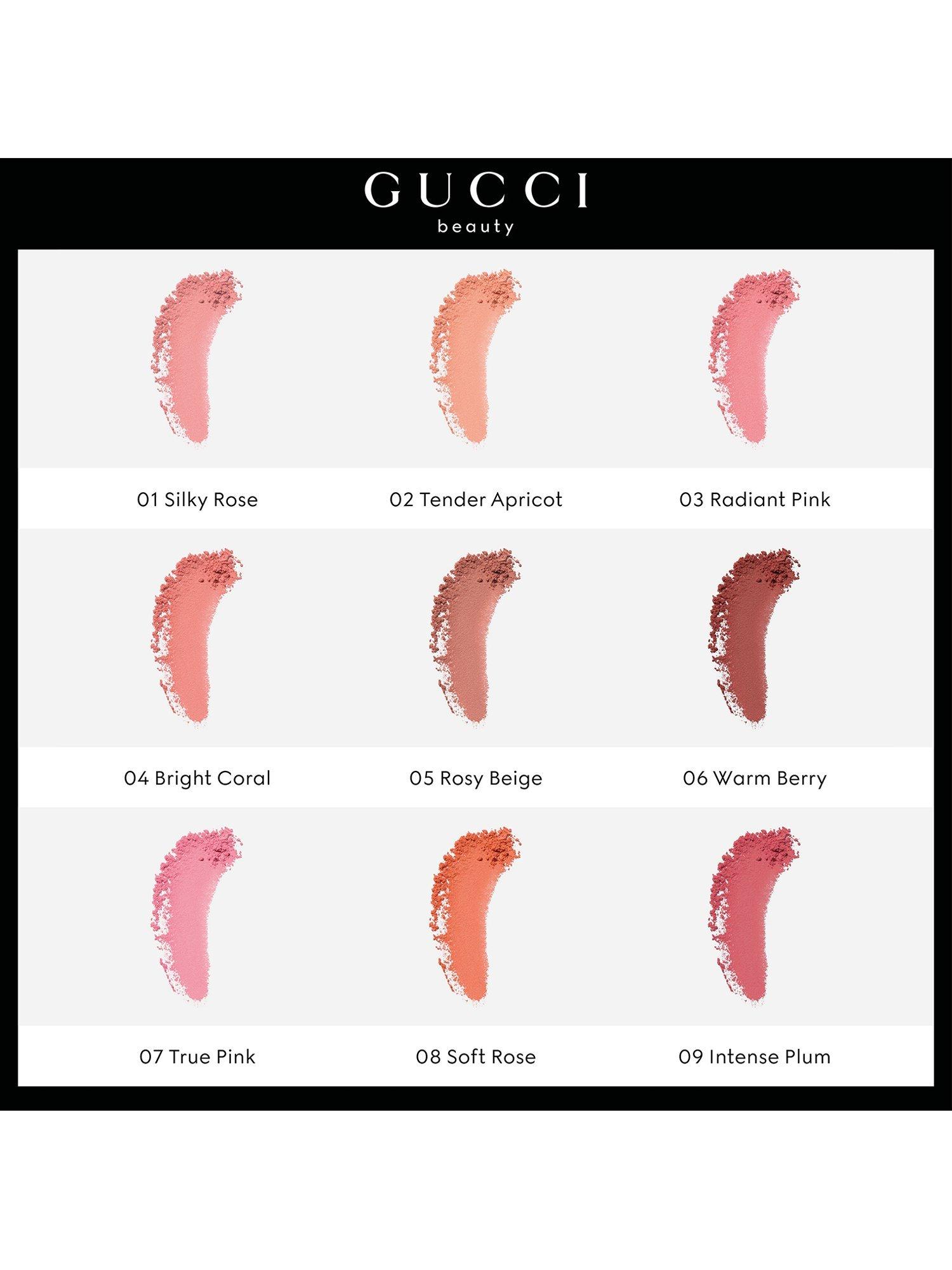 Gucci Blush De Beauté comes in an array of six lively hues designed for a natural-looking glow. From supple pink to brazen berry, this range of makeup powder blush offers a series of flattering shades that energise your skin tone to its freshest expression and deliver a touch of colour to cheeks and eyes.