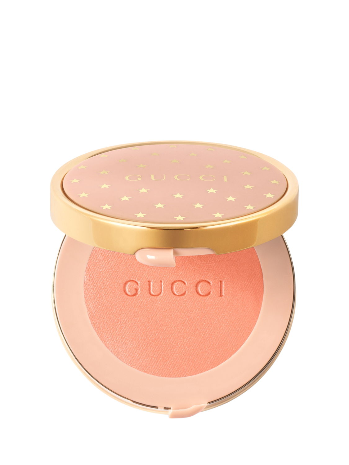 An object of desire that inspires. Embellished with pastel pink enamel and a playful star pattern, Gucci Blush De Beauté’s covetable compact is dressed in a vintage-inspired gold-toned design. Transforming on-the-go touch-ups into a special ritual, the compact reveals a tenderly embossed makeup powder with the emblematic Gucci logo within.