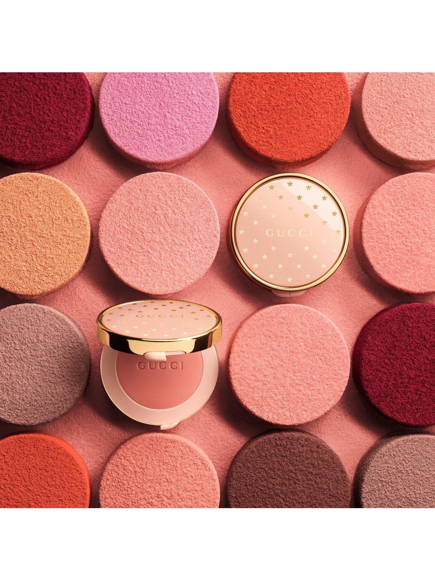 Gucci Beauty presents Gucci Blush De Beauté, the House’s first powder blush. Smooth, playful and multi-use, it can be applied on cheeks and eyes, becoming one with skin. Thanks to its formula, you can layer makeup effortlessly from a light flush to a daring look and any mood in between.