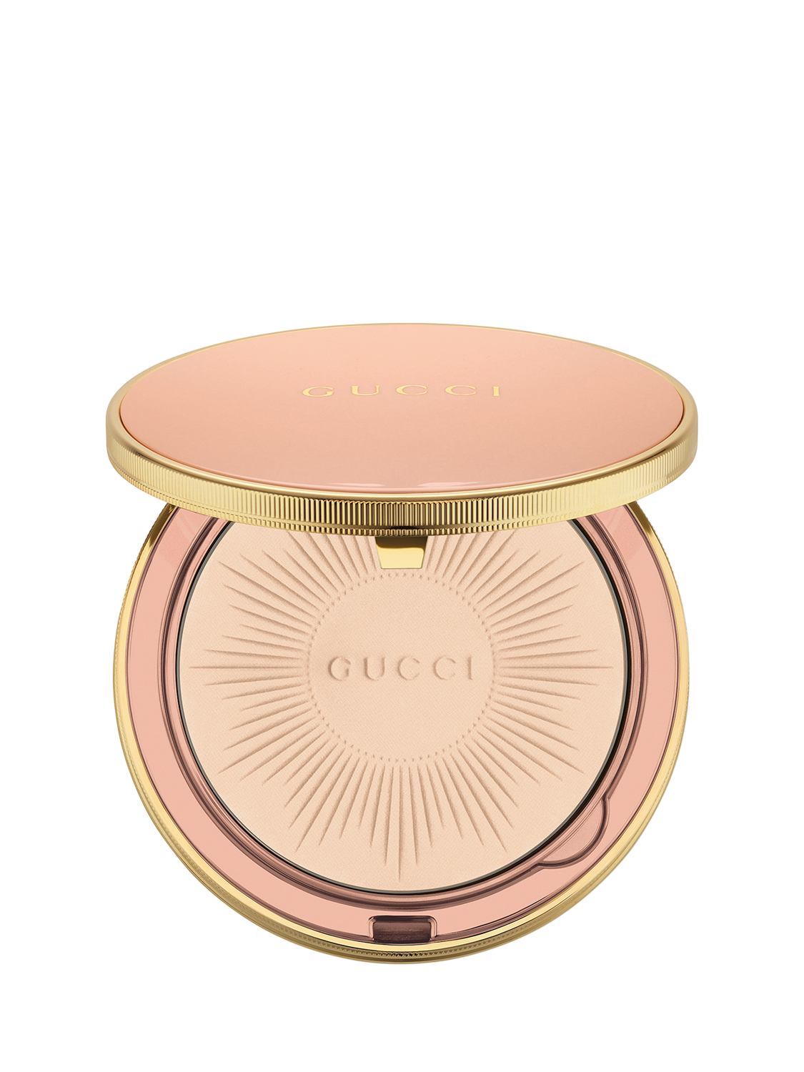 Gucci Matte Powder is available in a lineup of 10 beautiful shades that complement different skin tones. This face powder displays effortless elegance with its iconic powder pink and gold trim compact, adorned with an intricate linear pattern, as well as the Gucci name at its centre. The contemporary design is complete with a useful applicator and mirror, perfect to blur and set your makeup in the morning or for seamless touch-ups on the go.