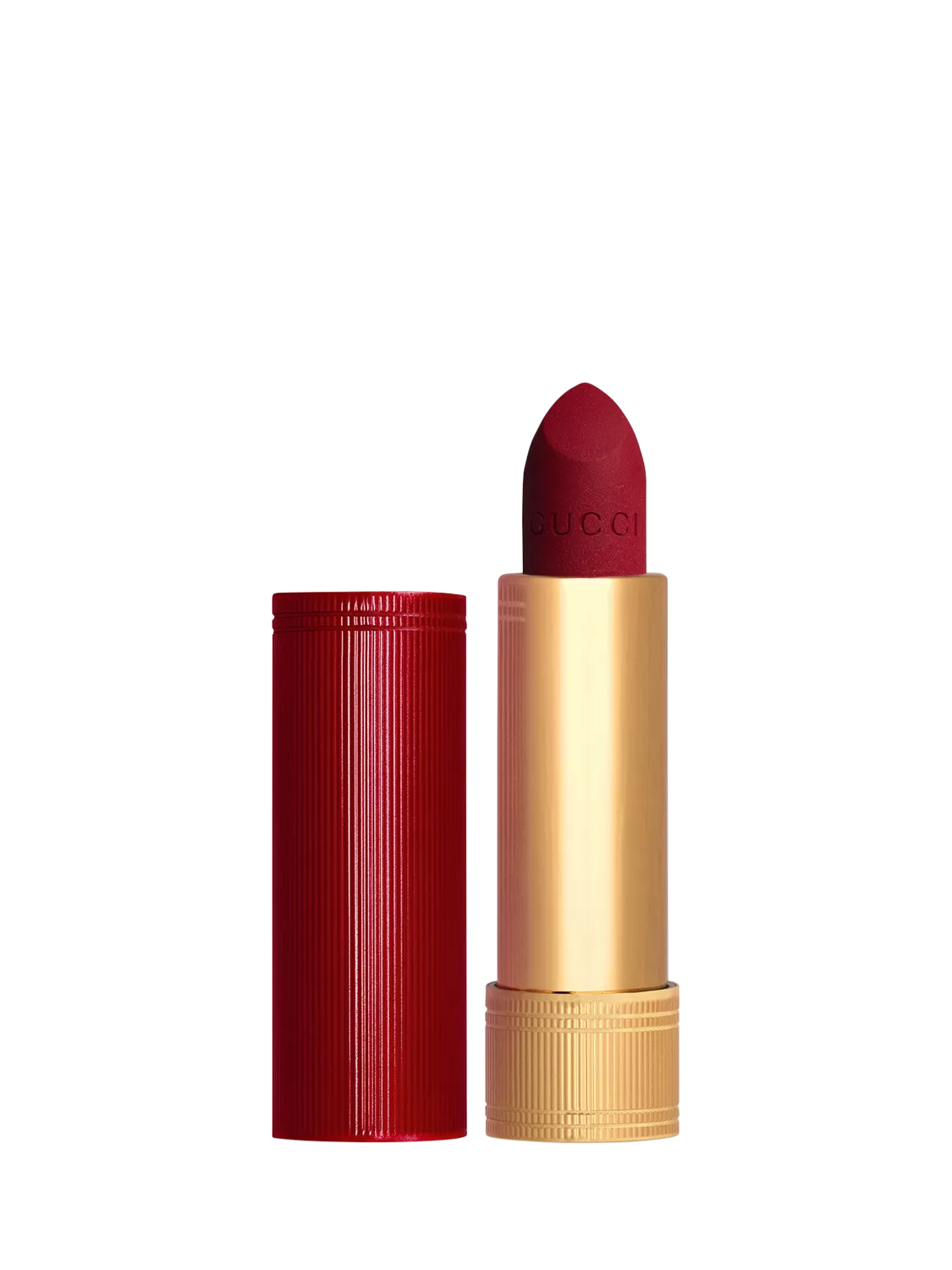 Gucci Beauty Rouge à Lèvres Matte is a collection of intensely hued lipsticks with a long-lasting matte finish. Specially formulated with oils, rich pigments and gelling waxes, this matte lipstick delivers rich colour with a soft velvety feel in a varied range of shades.