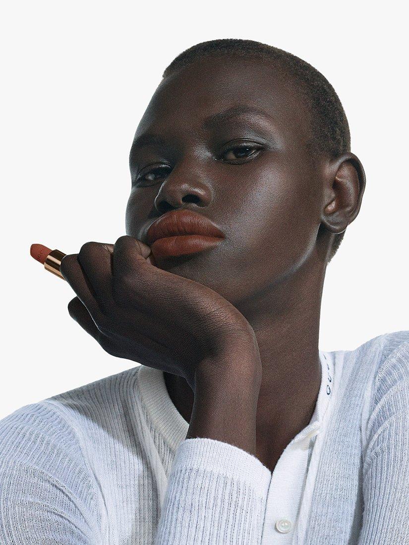 Rouge à Lèvres Matte Gucci lipstick delivers bright and rich lip colour with a soft and velvety feel. It has a silk-like texture enriched with oils and gelling waxes for a comfortable finish without drying out your lips or colour smudging.