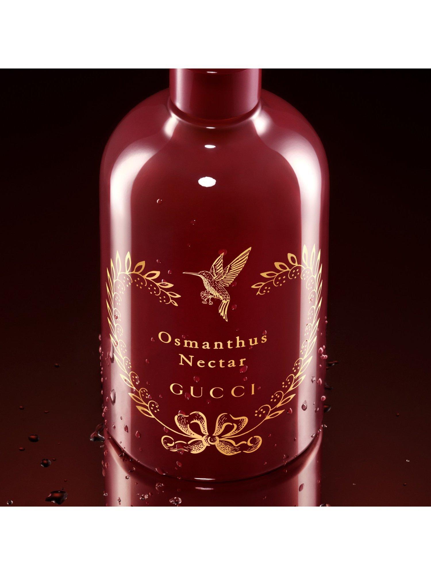 Gucci The Alchemist’s Garden reimagines the four stages of ancient alchemy. The Ignis stage: Gucci Osmanthus Nectar Eau de Parfum. The smell of the Osmanthus flower's Apricot-like facets, as experienced through taste.