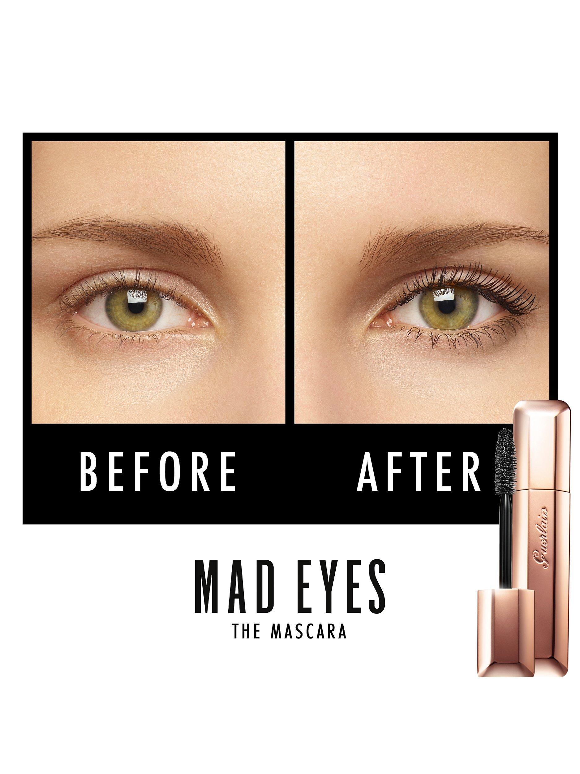 MAD EYES Mascara offers lash-by-lash buildable volume: +112%* volume in an instant. Lashes are thicker, longer and with more curl for 24 hours**. The soft fibre brush is calibrated to increase the density of each lash after every stroke, for spectacular volume and 24-hour**, water-resistant wear. The product’s unique formula infuses the lashes with skincare properties for evermore beautiful lashes application after application. After four weeks of use, even without makeup, lash fibres are longer, thicker and with boosted curl. Its formula is resistant to tears and humidity.
