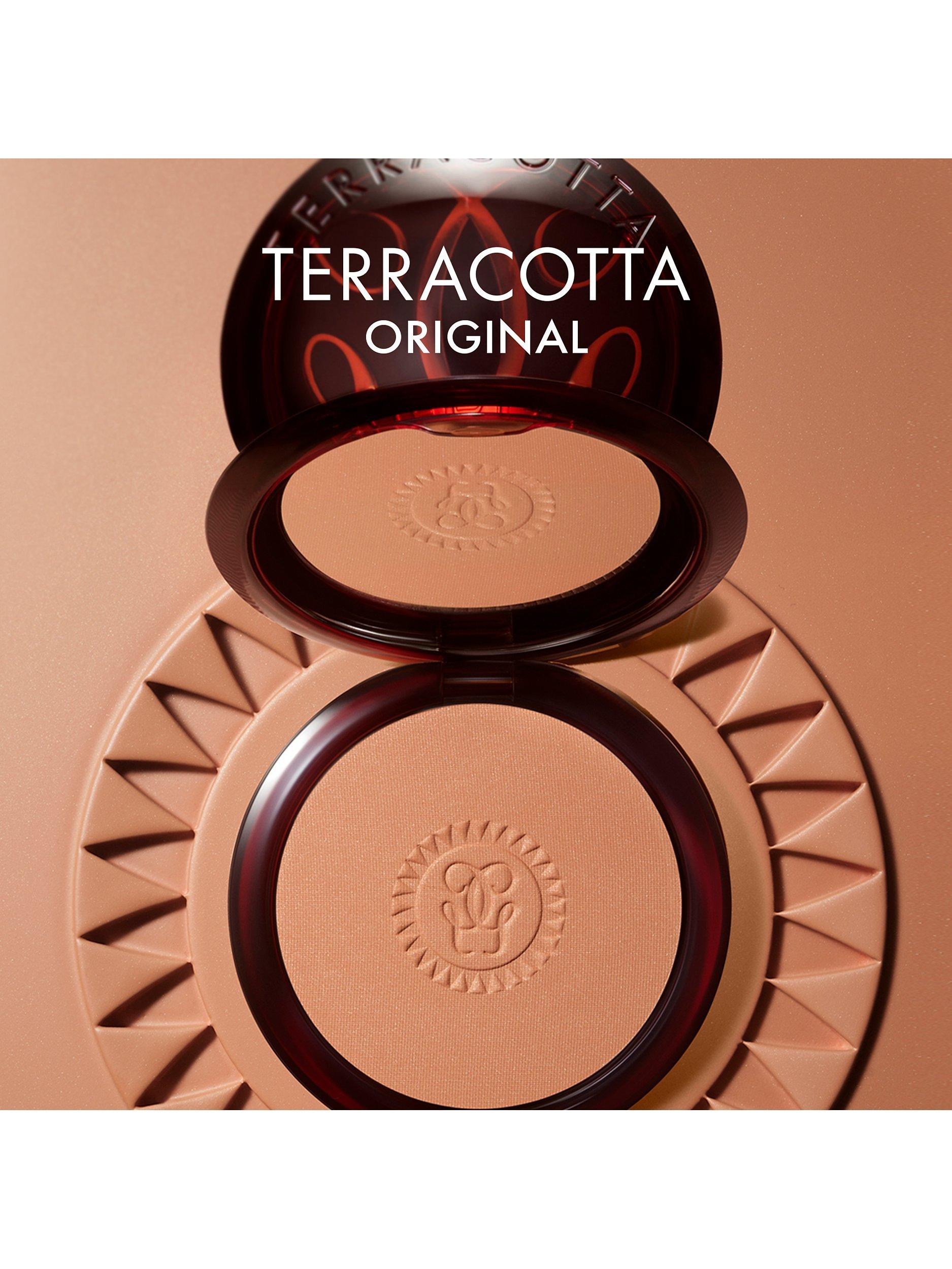 A legendary product, Terracotta was the first Guerlain Bronzing Powder. Available in eight shades, Terracotta is a product suitable for all skin tones. Terracotta perfectly reproduces the golden and coppery shimmer of sunlight, restoring a natural healthy glow in a few strokes of a brush. The highly desirable product is fool-proof and can be used all over the face or to contour and sculpt your tan.