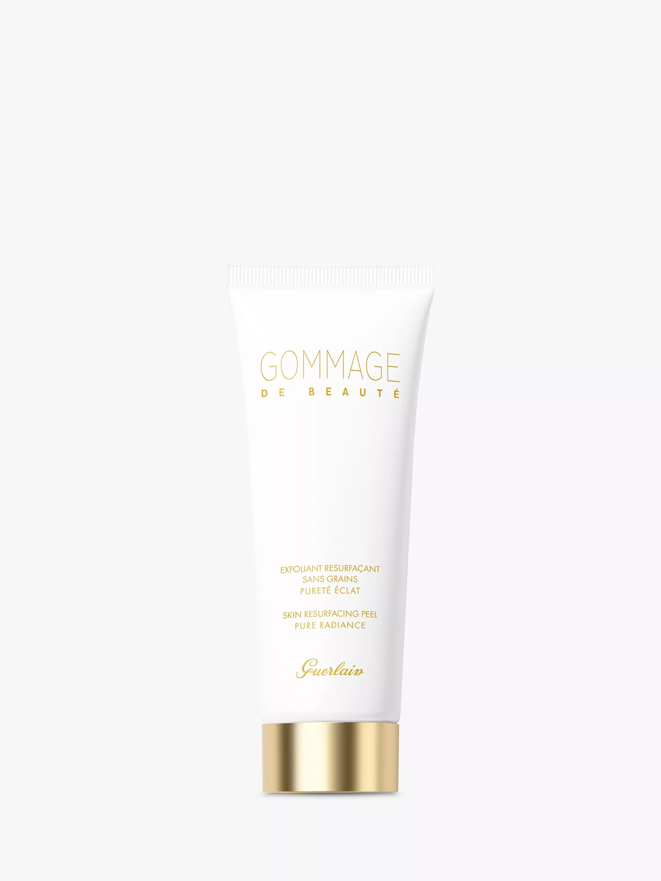 The Gommage de Beauté by Guerlain, the grain-free skin resurfaçing peel to reveal the skin's natural radiance. Its Secret? Just the right concentration of 3 naturally derived exfoliating acids that complement each other to gently remove dead cells.