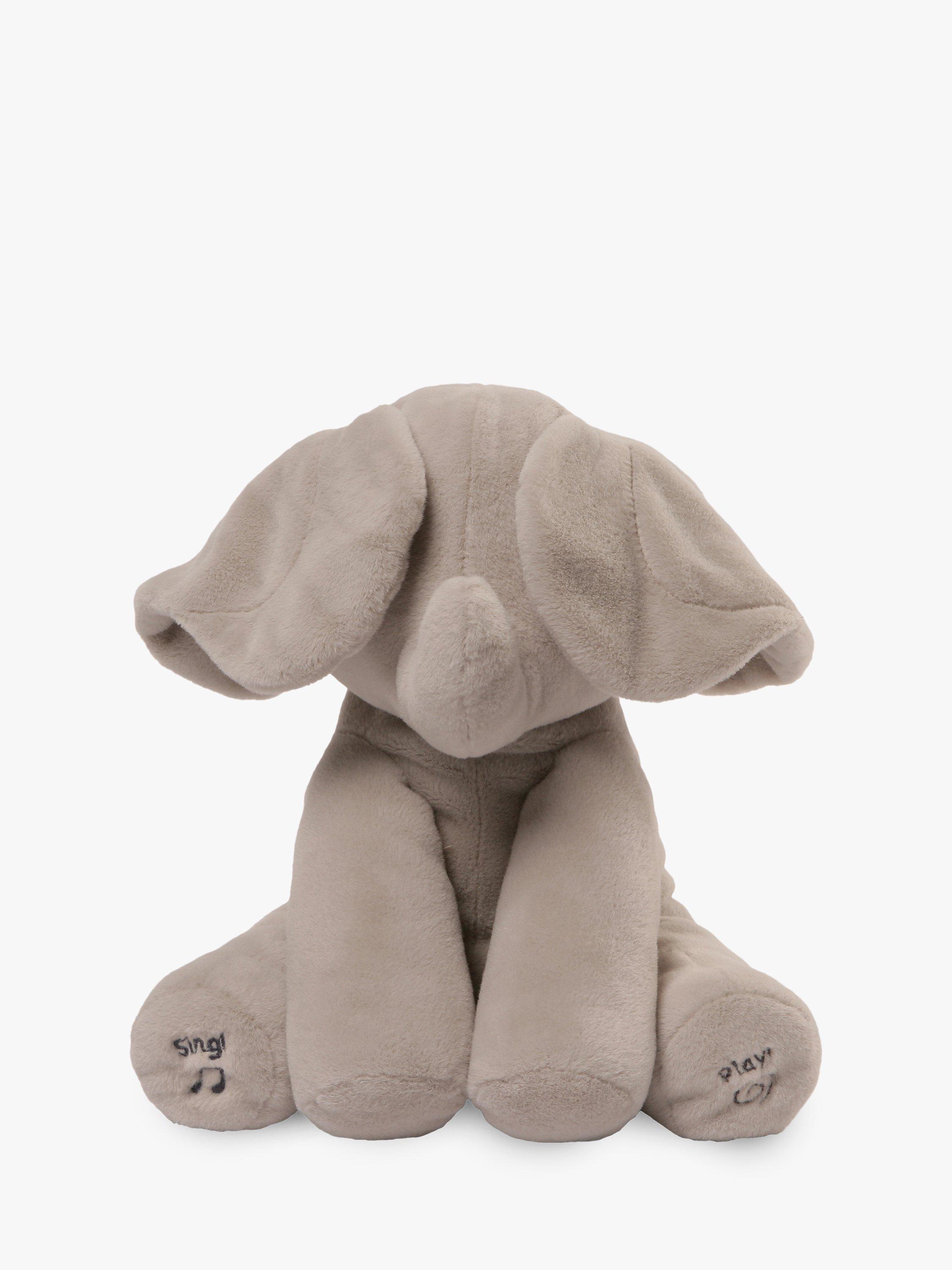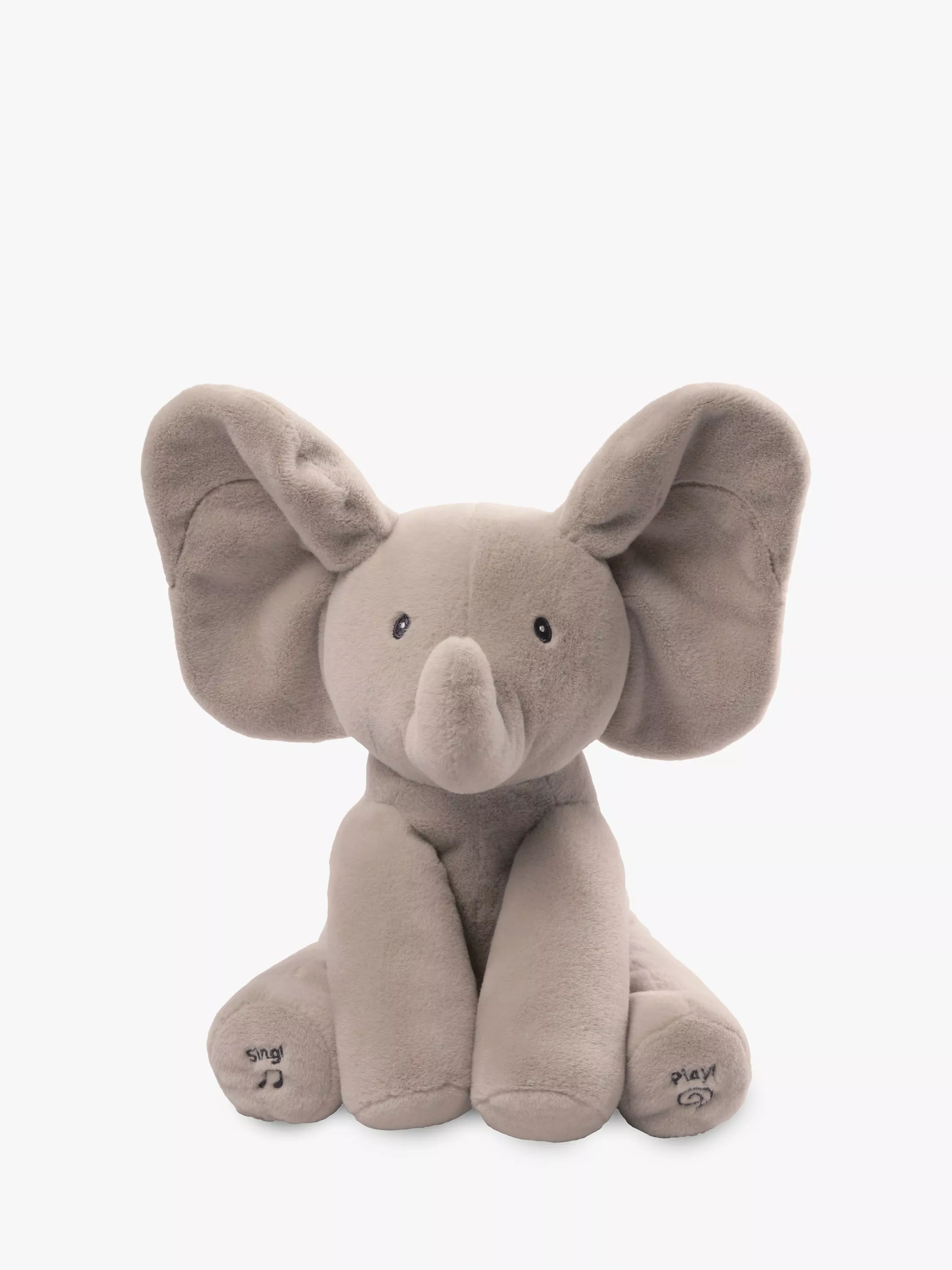 Flappy the Elephant from GUND is an animated plush that has body movement. When you press its left foot its ears move to play peek-a-boo with you which is sure to keep your child entertained. If you press its right foot it plays the song 'Do Your Ears Hang Low' in a cute child's voice.