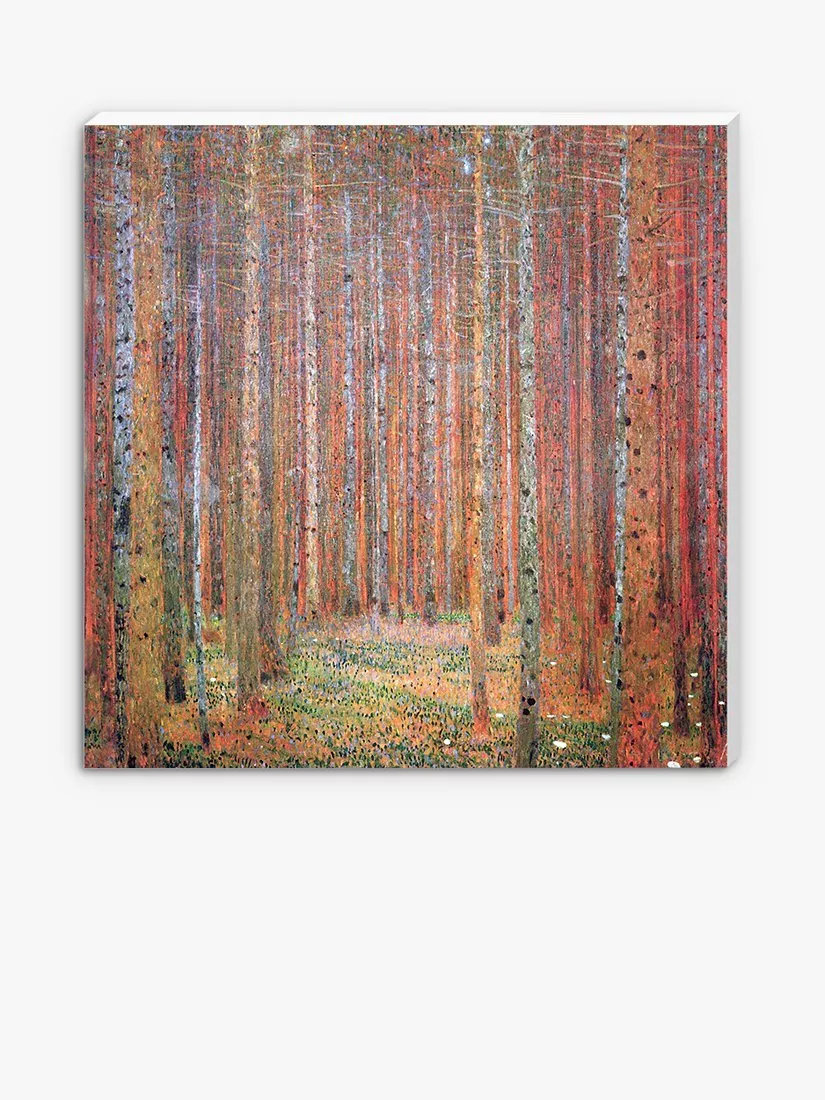 Austrian painter Gustav Klimt produced a series of landscapes throughout his career inspired by his summer vacations spent in the picturesque town of Salzkammergut in Austria. In 1901, he produced the oil painting ‘Tannenwald (Fir Forest) I’ which includes a sea of orange-tinted trees that have been rendered in a strict vertical rhythm. The dazzling surface aligns with Klimt's decorative tendencies.
