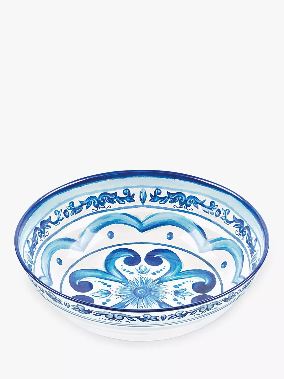 Perfect for picnics and parties, this serving bowl looks and feels like ceramic, down to its glaze-like appearance and traditional Italian-style pattern. Made from 100% melamine with a food-safe coating, it's shatter-proof, durable and lightweight. Great for outdoors and dishwasher-safe when you're cleaning up back in the kitchen.