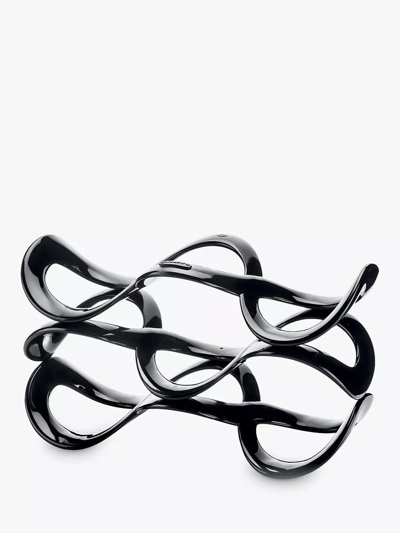 A wine rack and an attractive ornament, made in Italy by Guzzini. This universal bottle rack has an original form: a strip of acrylic material, sinuously interwoven to create a wine holder for up to five bottles of various sizes.