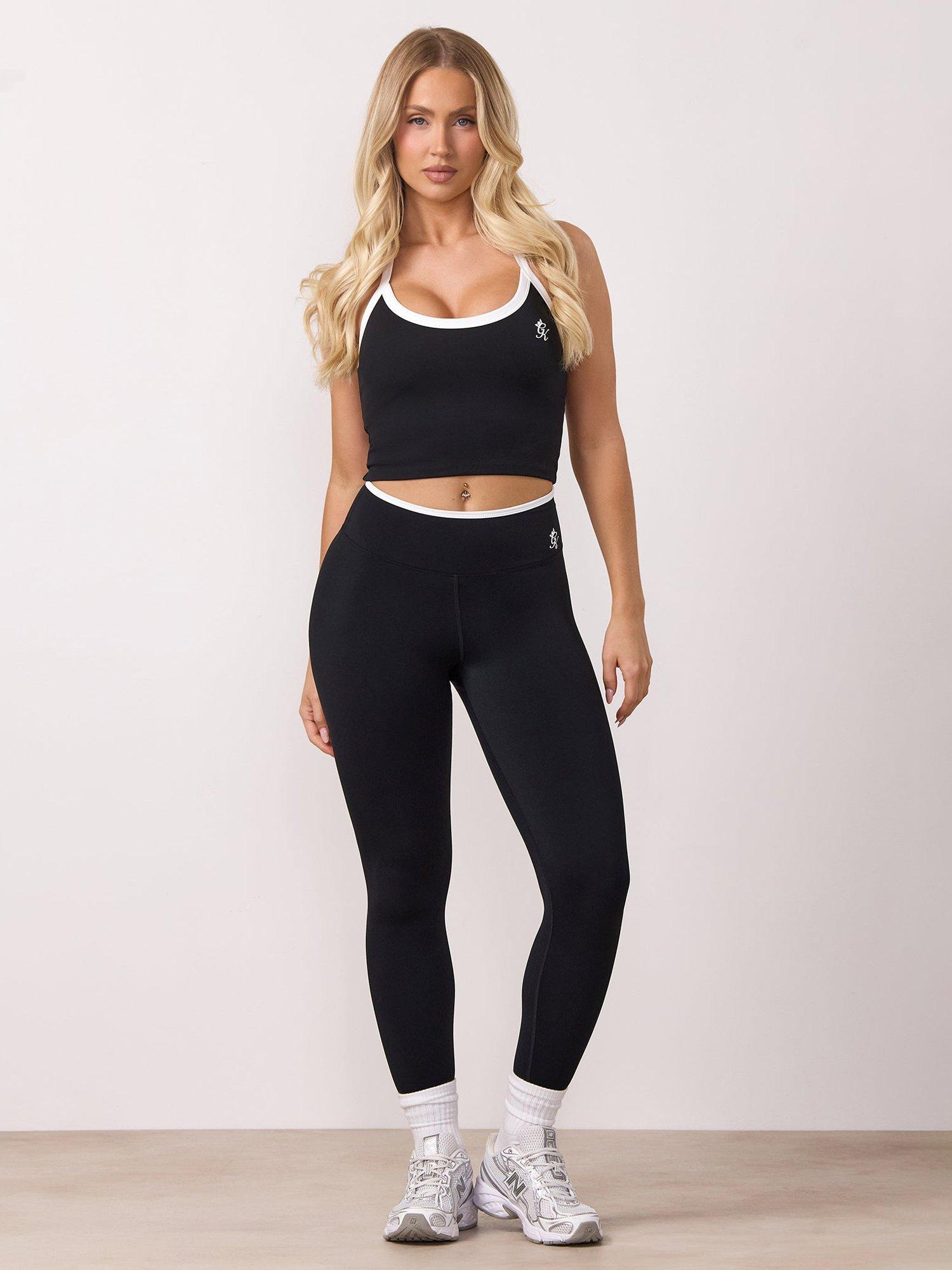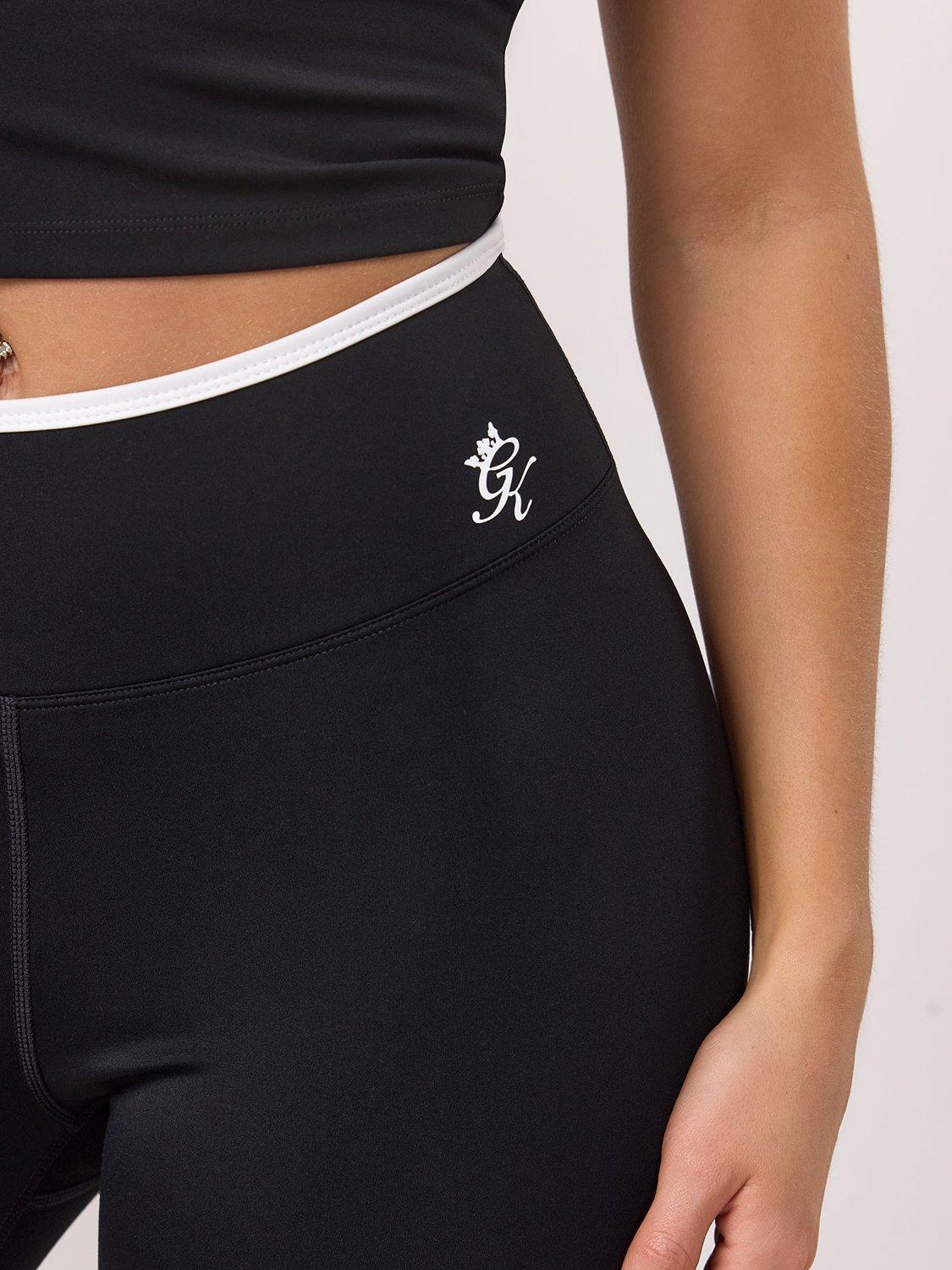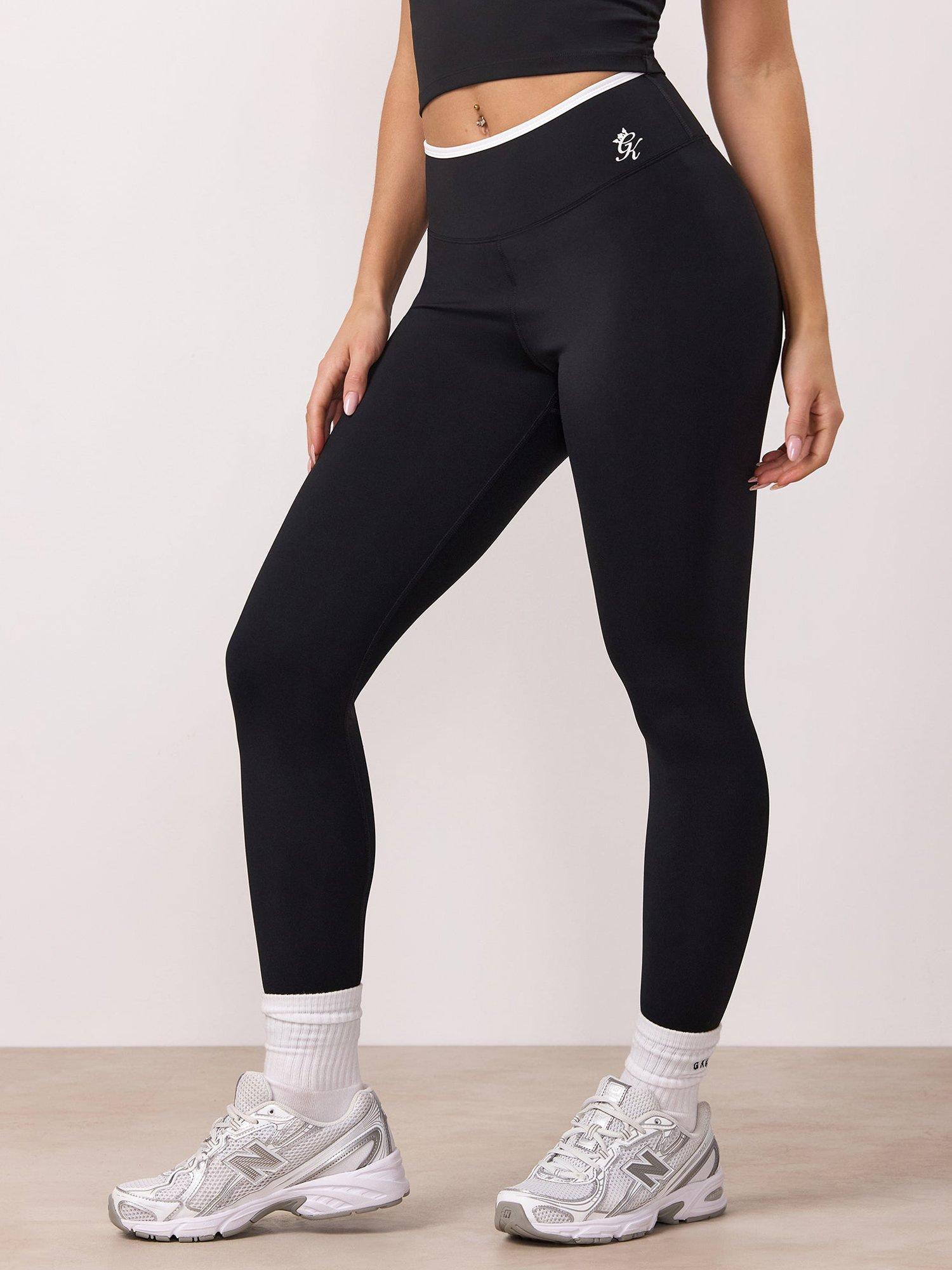 Women's Sports Legging with contrast trim around the waist. Flattering curved waistband at back with reflective branding. Moisture wicking and soft hand feel fabric.