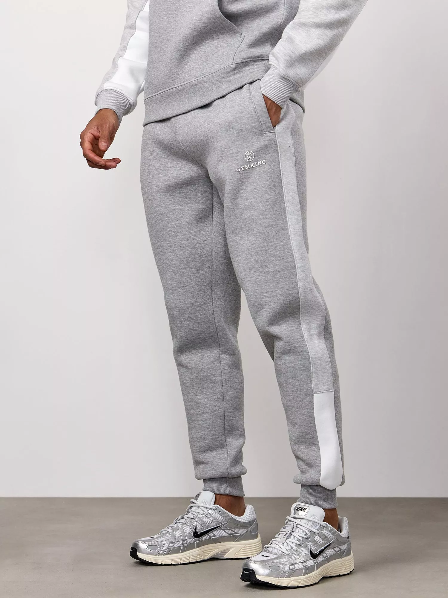 Gym KingCotton Blend Colour Block Joggers, Light Grey