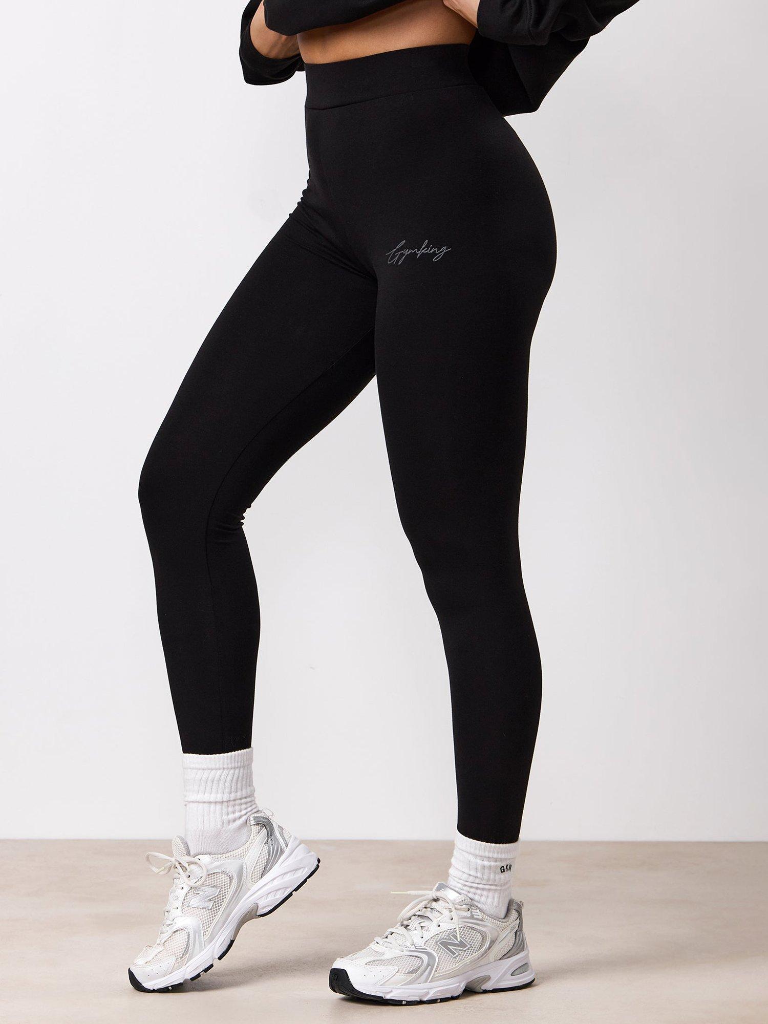 Tight-fit leggings cut with a high rise. Crafted from soft jersey fabric, featuring an elasticated waistband and Gym King branding on front leg.