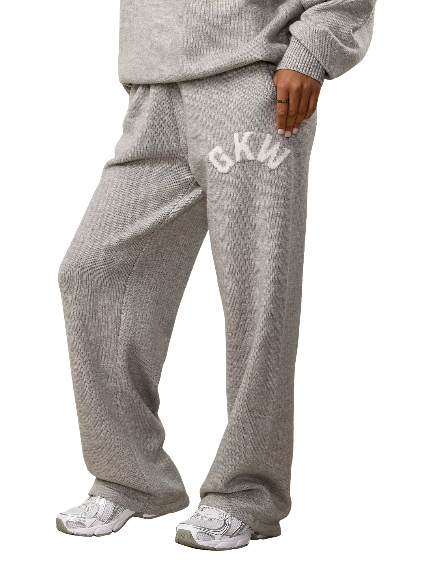 Cut to an oversized, slouchy fit from a super-soft cosy knit, these straight-leg trousers are designed with an elasticated waist, side pockets and Jacquard GKW branding.