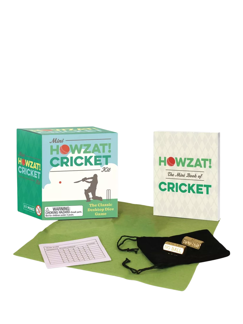 Simple to master and great fun to play, "Howzat!" is the cricket dice game that can be played anytime, anywhere! Includes metal dice, rolling mat, and scorepad. Plus, a 32-page informative mini book includes cricket trivia and the rules of the game. Ideal for travel or at the office, it's a fun gift item for frustrated cricketers of all ages.