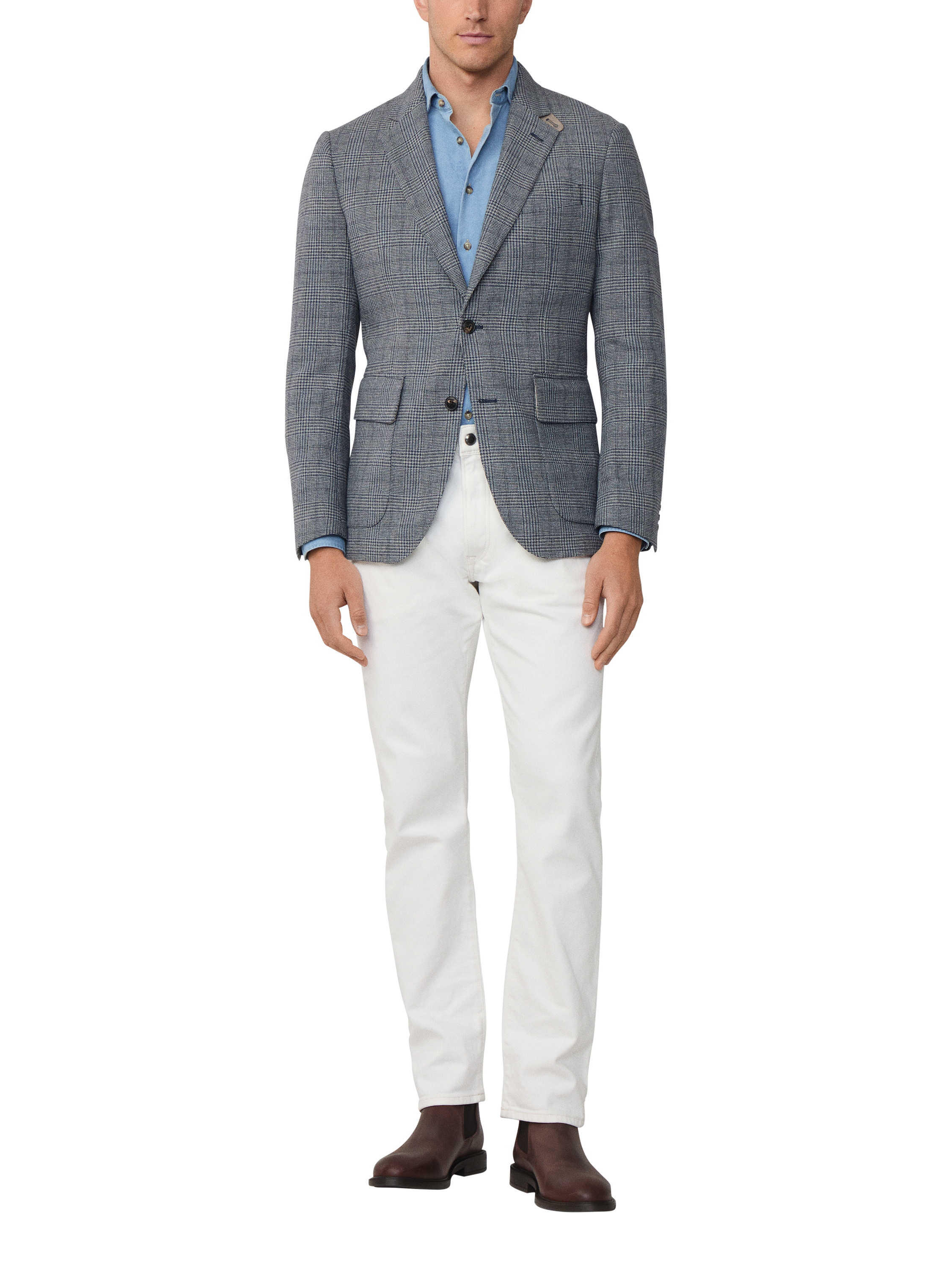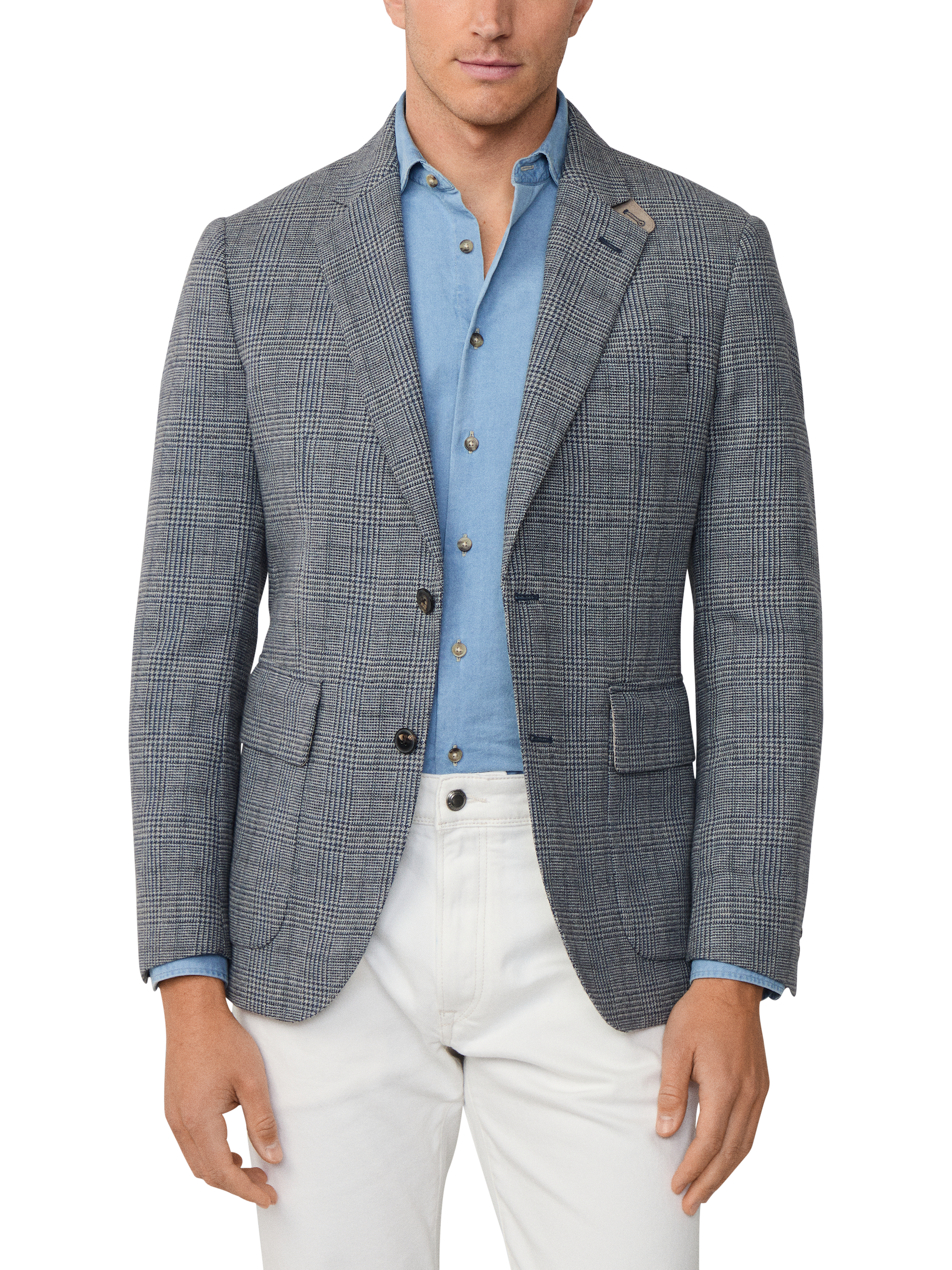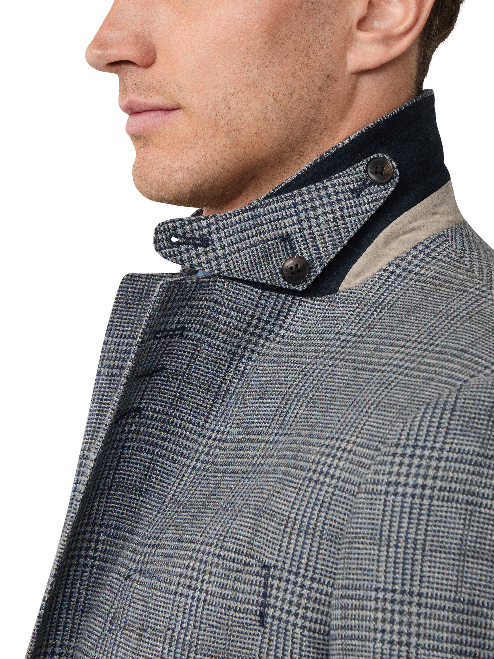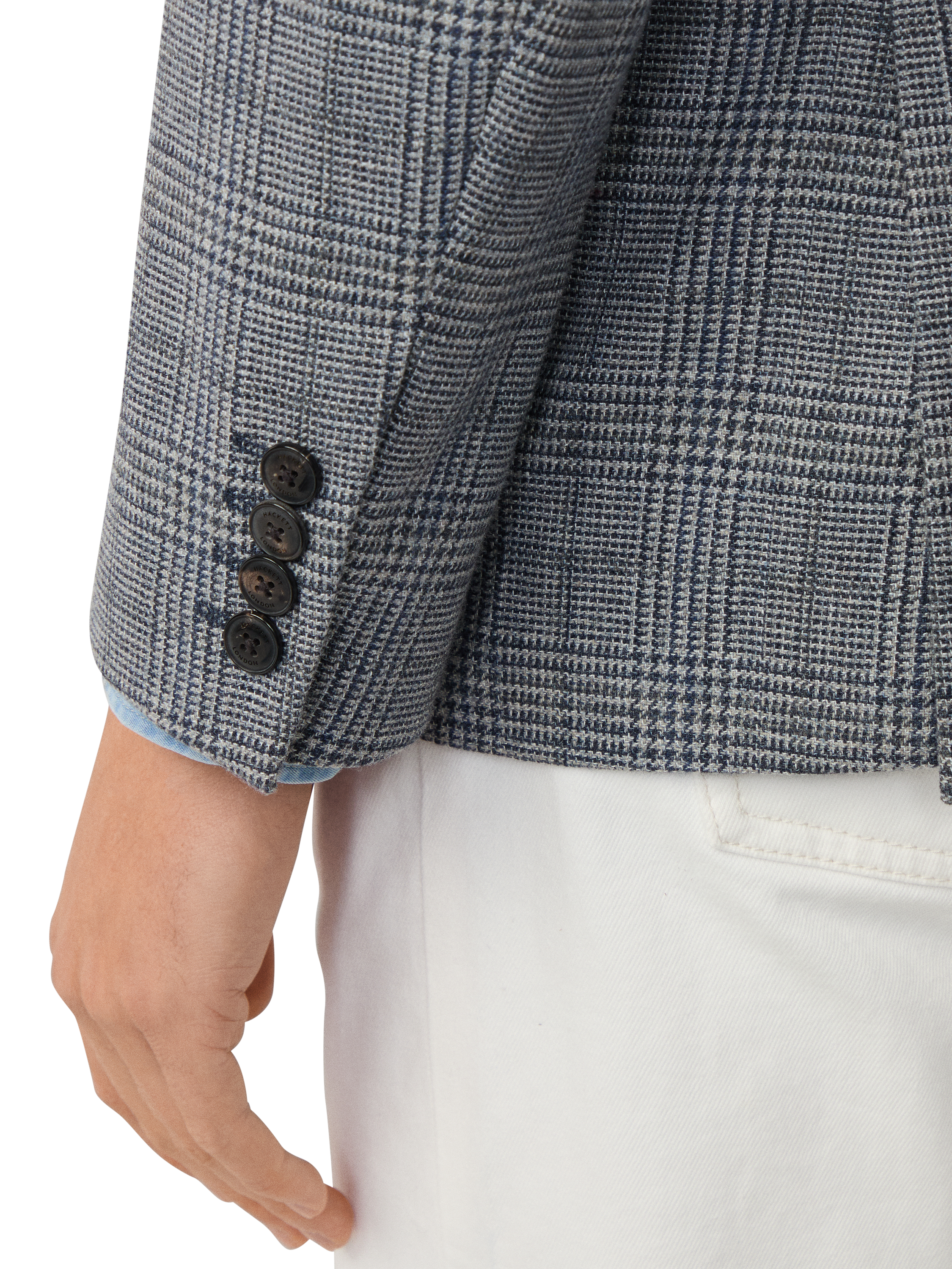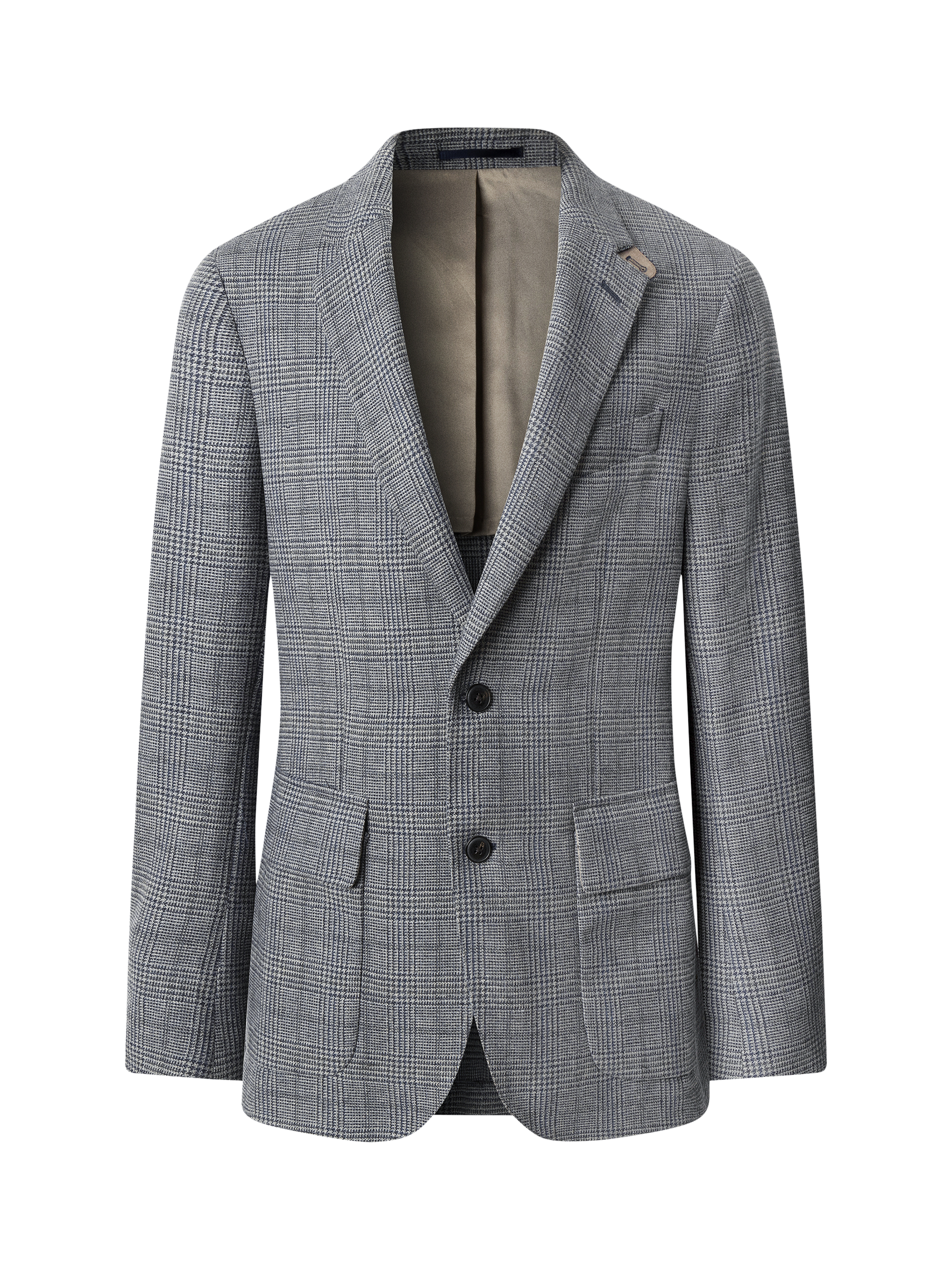 Made from a wool-cotton blend fabric, it has a with glen check design and half-lined internals.