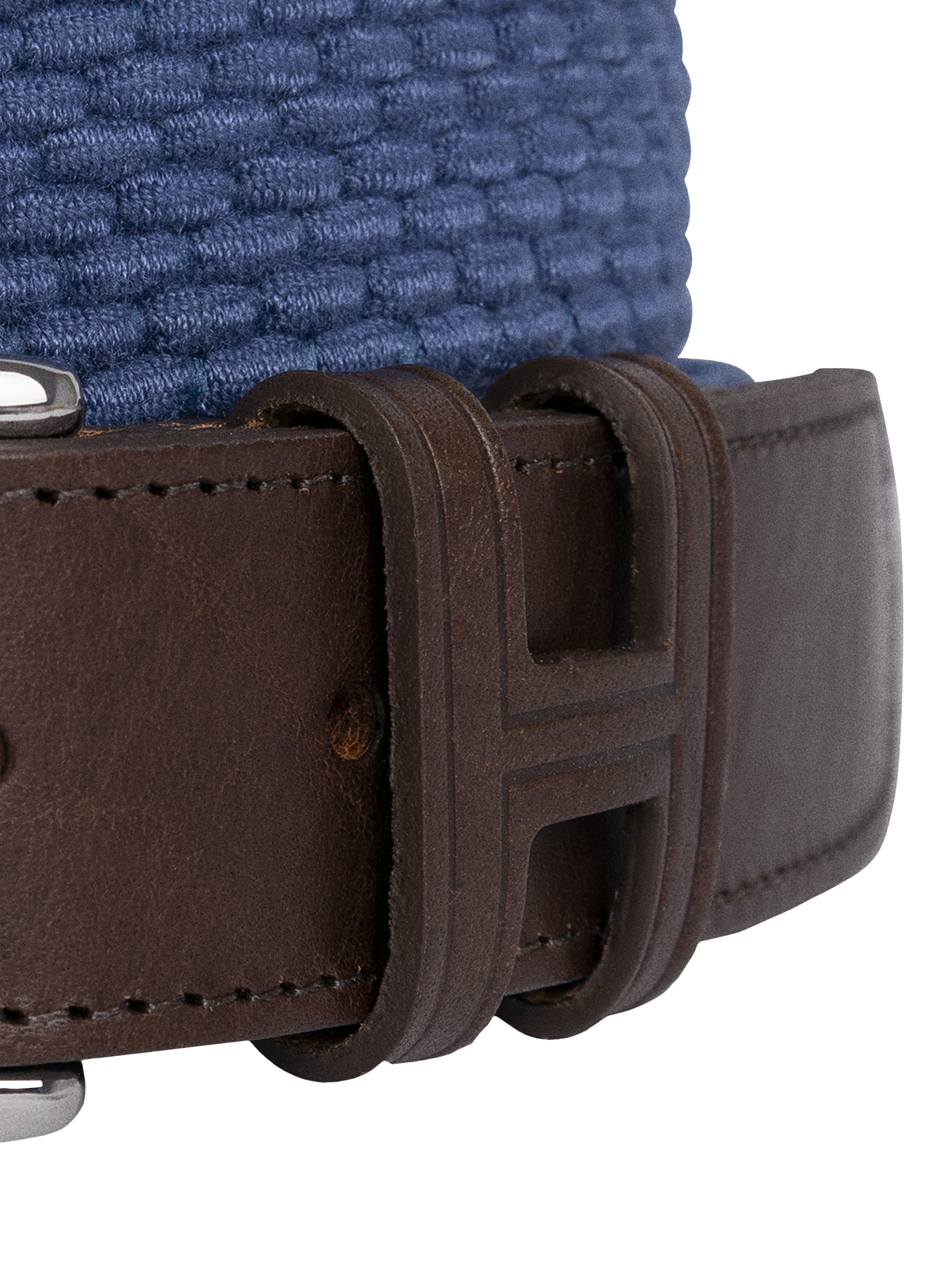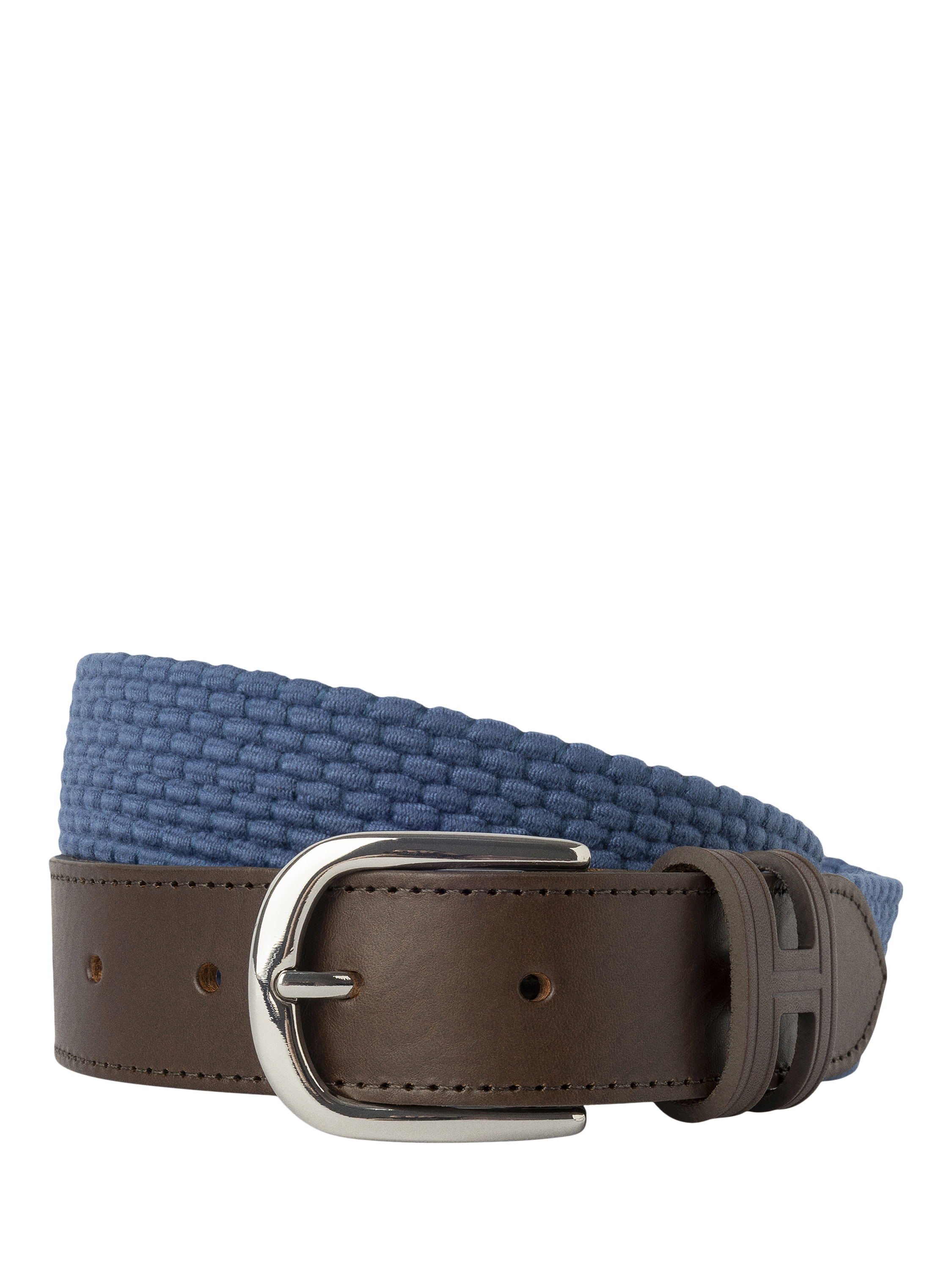 Braided in a lightweight fabric, this casual belt is designed with a metal buckle, leather tips, with decorative stitching and parachute-type cord from Spain. Finished with a leather loop in an H monogram shape - made in England.