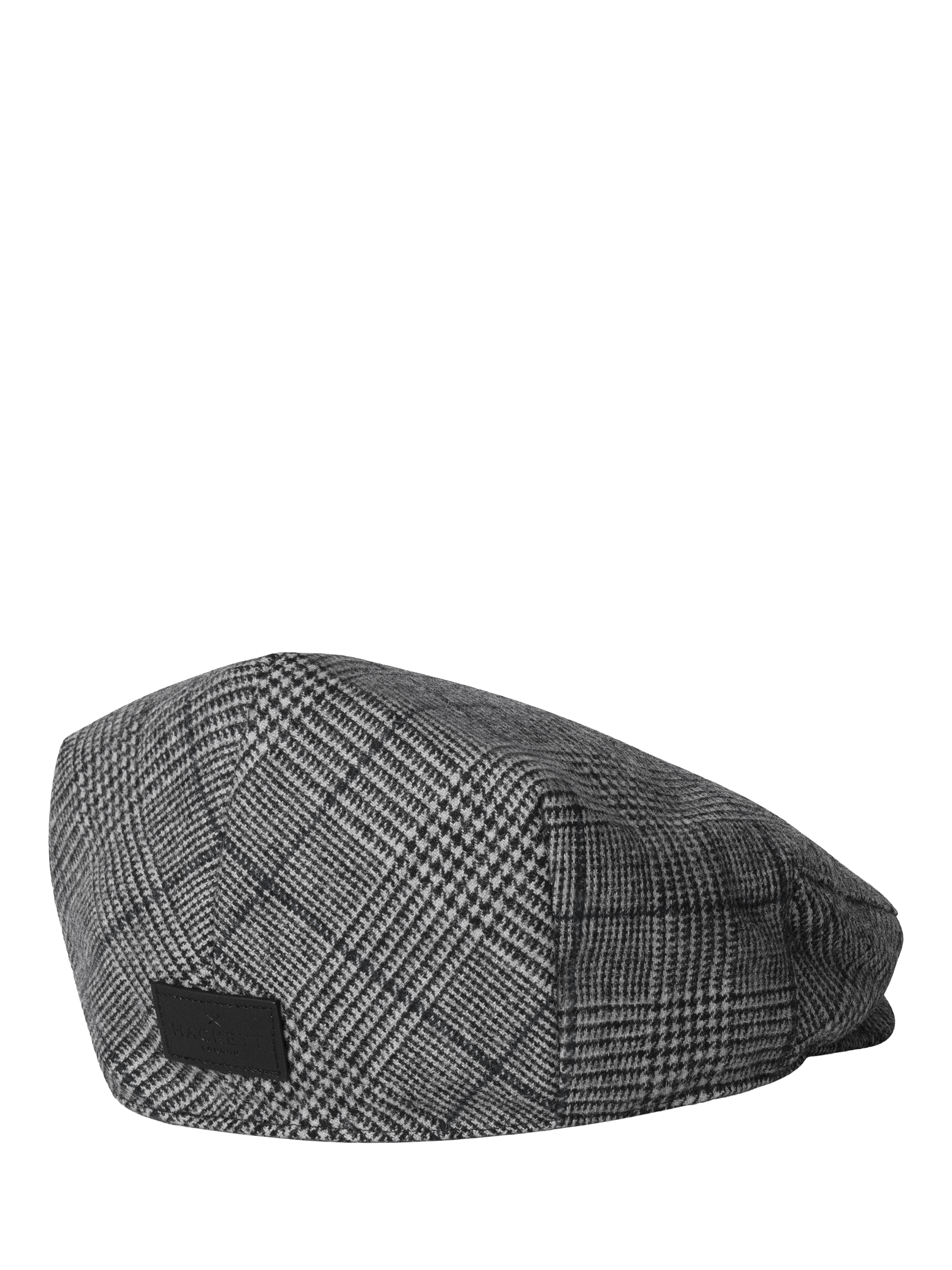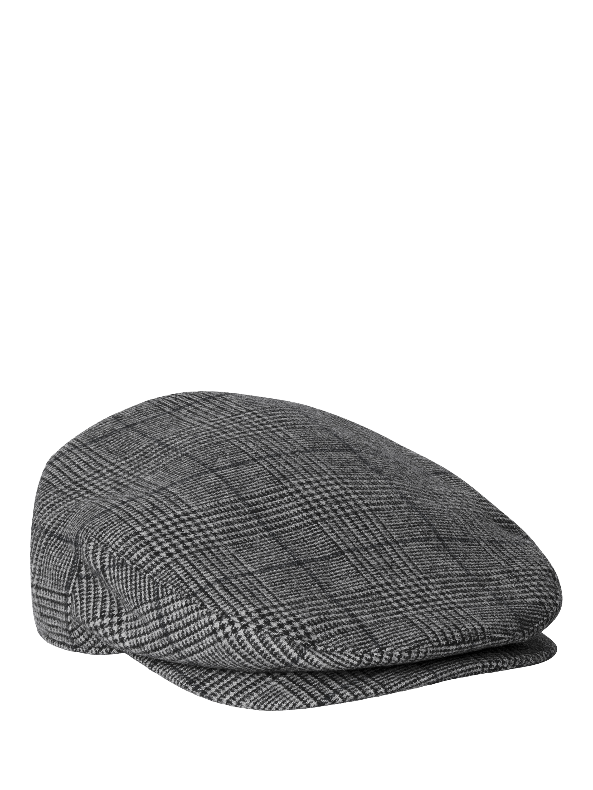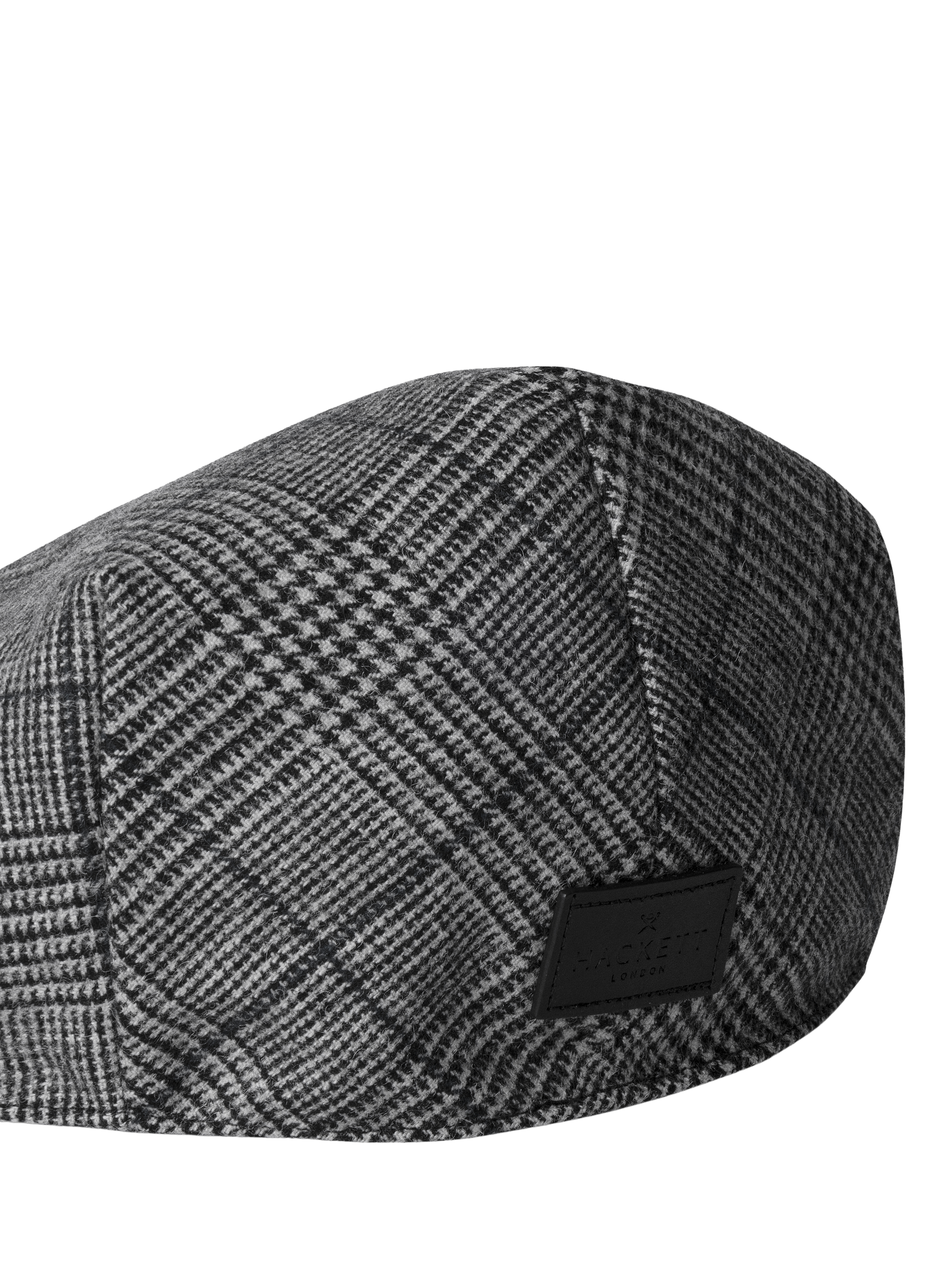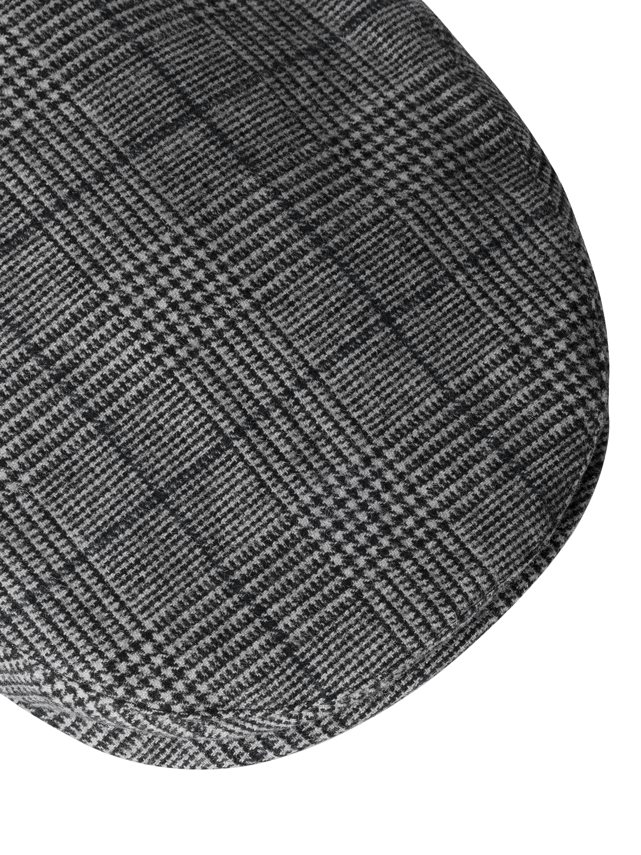 A distinctive flat cap cut from a soft cotton-blend fabric and finished with a Prince of Wales check pattern.