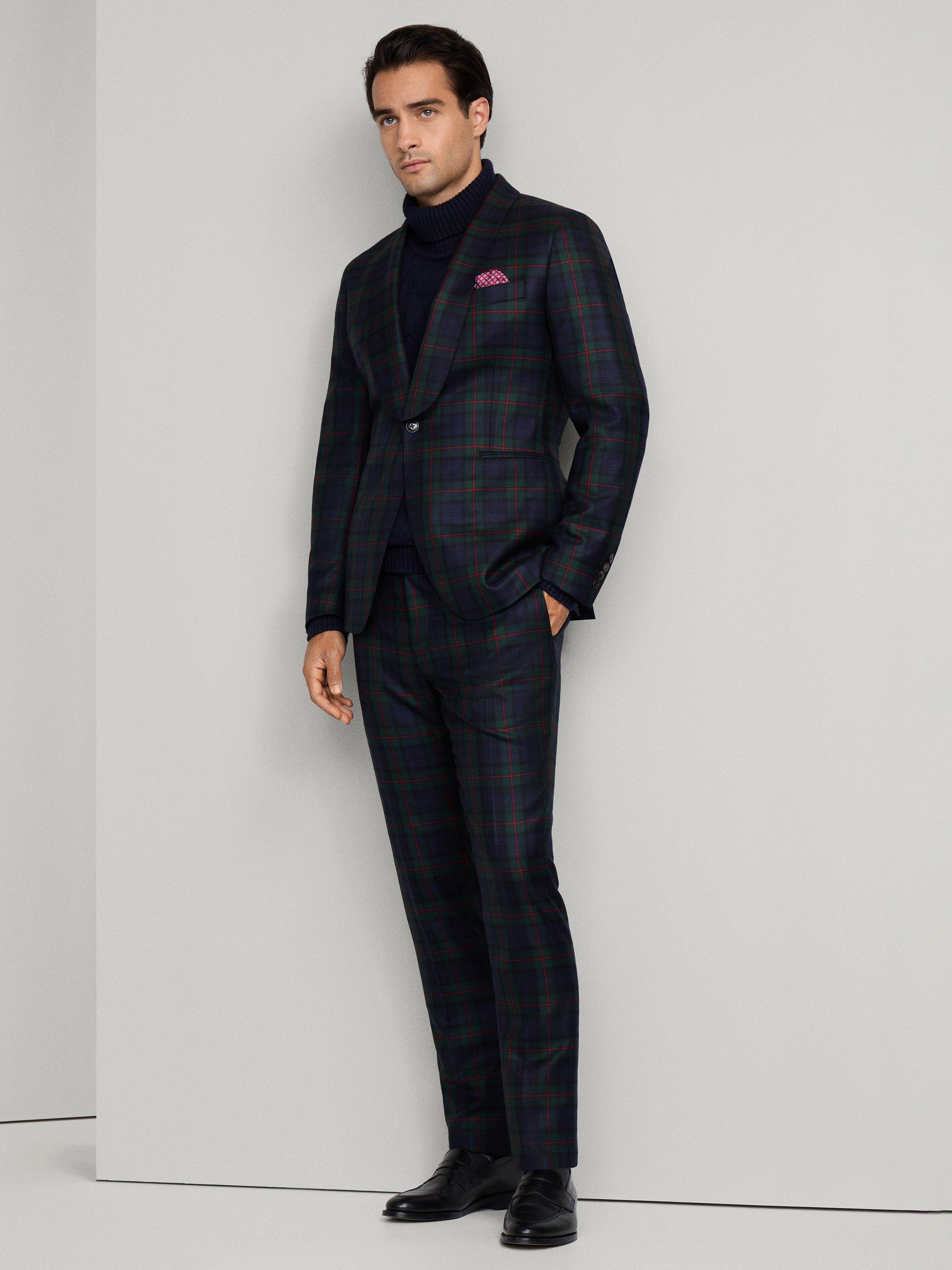 A pair of slim-fit tailored trousers by Hackett London, crafted from pure wool fabric that offers softness and substance for effortless style all day. With a button fastening, all-over printed checks and regular hems.